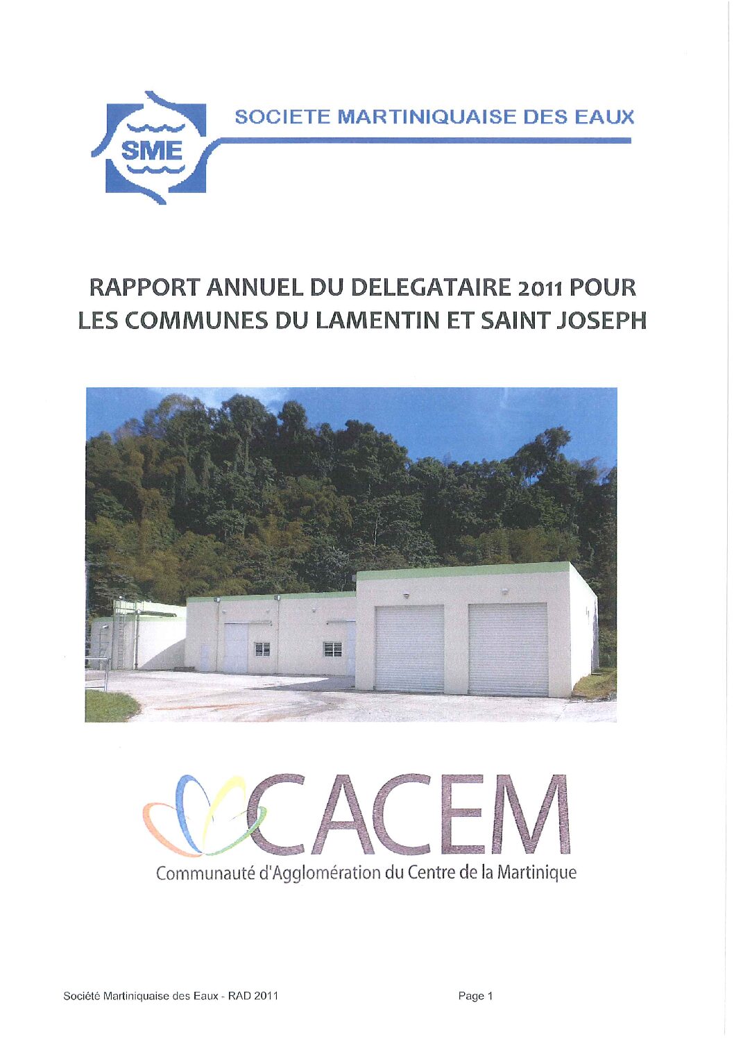 Le rapport annuel du délégataire (RAD) du service public d’alimentation en eau potable des villes du Lamentin et de St Joseph , exercice 2011.