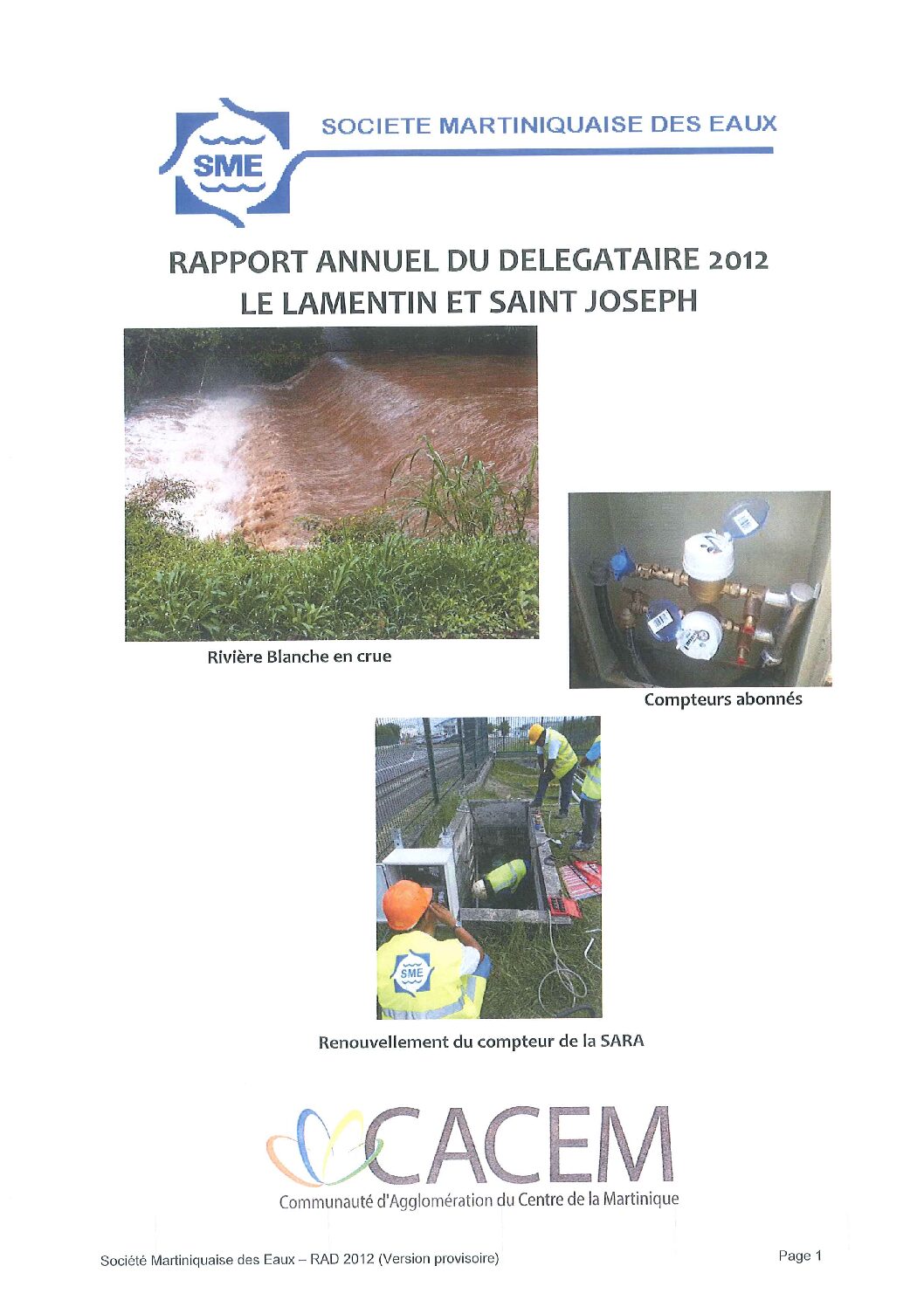 Le rapport annuel du délégataire (RAD) du service public d’eau potable des villes du Lamentin et de Saint-Joseph – Exercice 2012