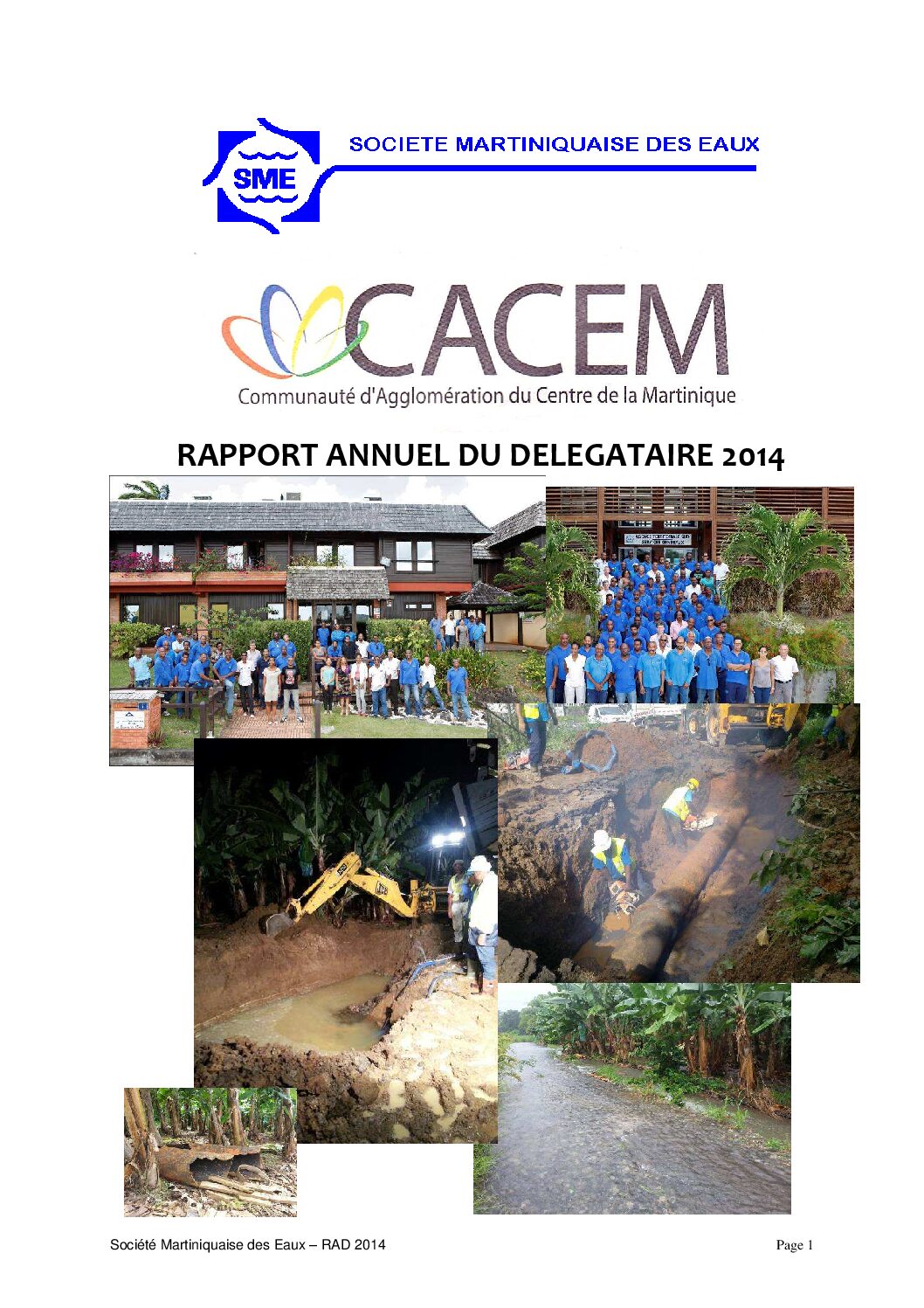 Le Rapport Annuel du Délégataire du service public d’alimentation en eau potable des villes du Lamentin et de Saint-Joseph – Exercice 2014.