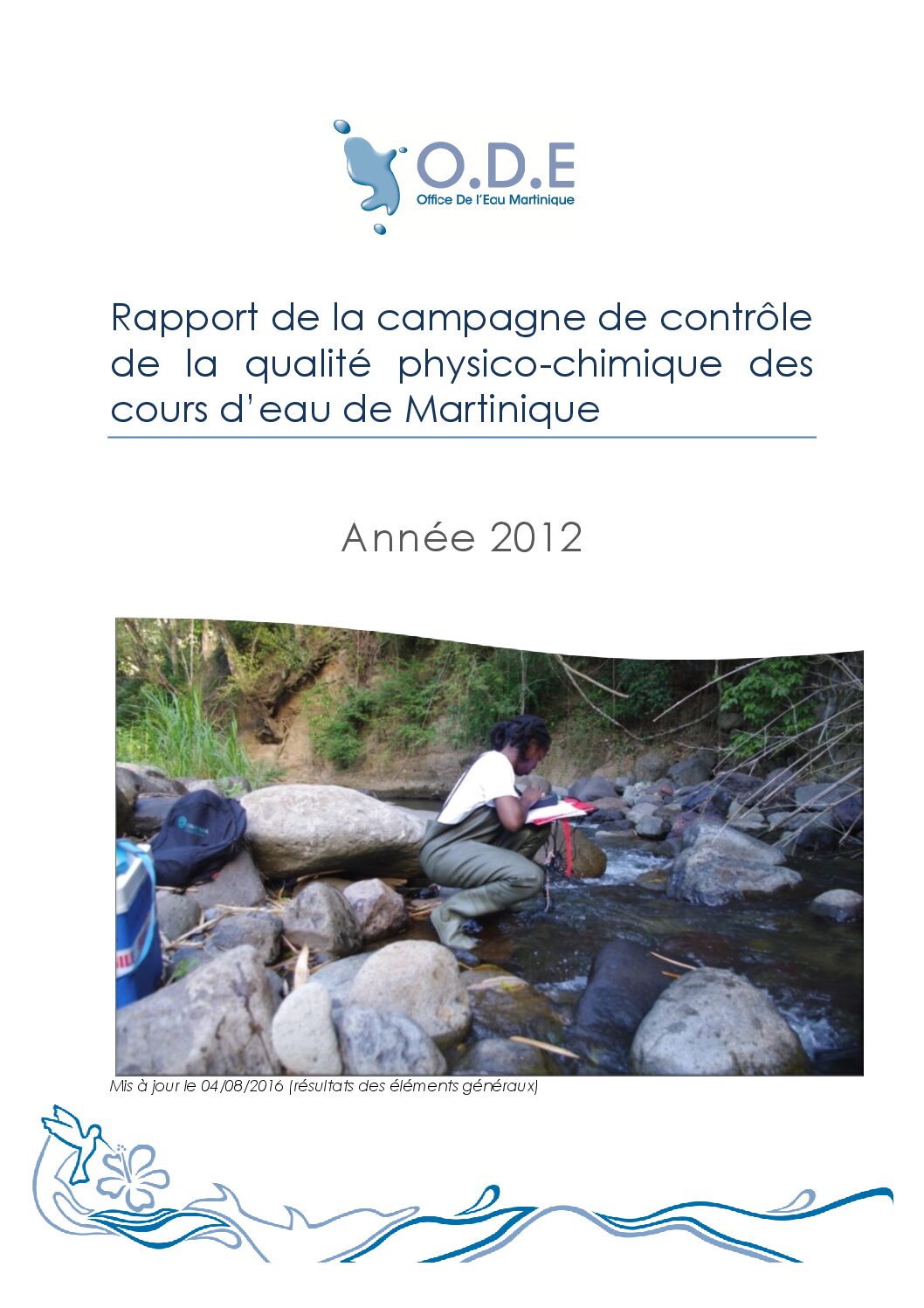 Des prélèvements d’eau ont été réalisés en régie par l’ODE sur le réseau de contrôle de la qualité de l’eau (RCS et RCO) qui compte 21 stations réparties sur les 20 masses d’eau du territoire. Les analyses d’eau ont été sous-traitées au Laboratoire Départemental d’Analyse de la Martinique (paramètres physico-chimiques et minéralisation) et au Laboratoire Départemental d’Analyse de la Drôme (micropolluants organiques et minéraux). La valorisation des données a été réalisée en régie par l’ODE. Les paramètres de l’état chimique et des polluants spécifiques de l’état écologique ont été contrôlés une fois par mois et les éléments généraux de l’état écologique une fois tous les deux mois.
