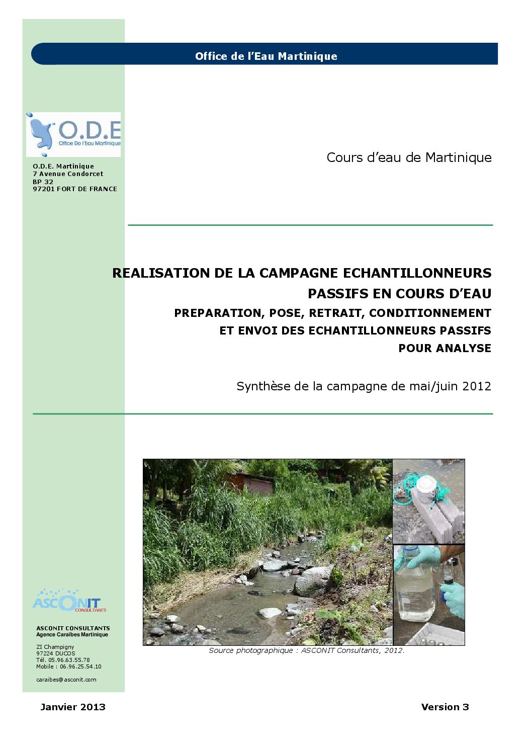 Réalisation de la campagne échantilloneurs passifs en cours d'eau – Synthèse de la campagne de mai-juin 2012