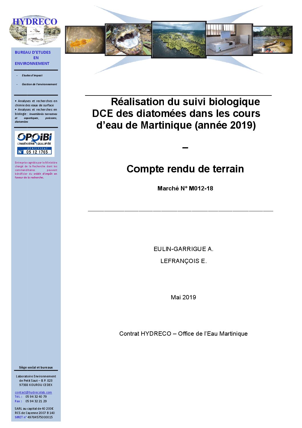 Rapport suivi biologique DCE des diatomées pour l'année 2019