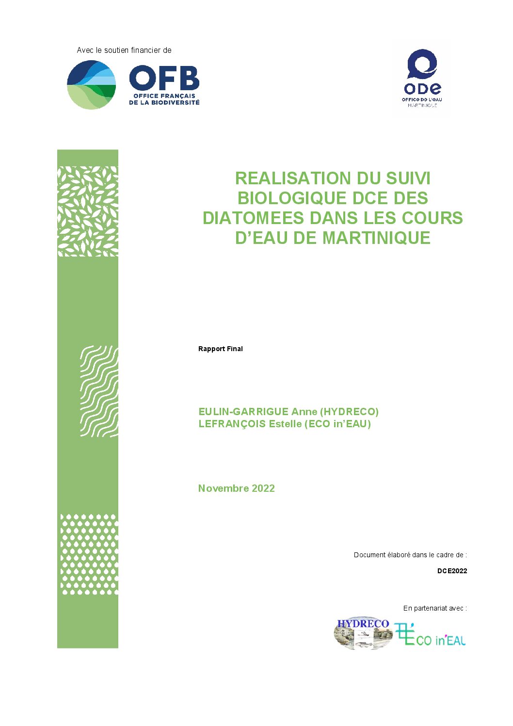 La présente étude concerne le suivi de l’élément biologique « diatomées » dans les cours d’eau de Martinique dans le cadre de la mise en œuvre de la Directive Cadre sur l’Eau (DCE) pour l’année 2022.