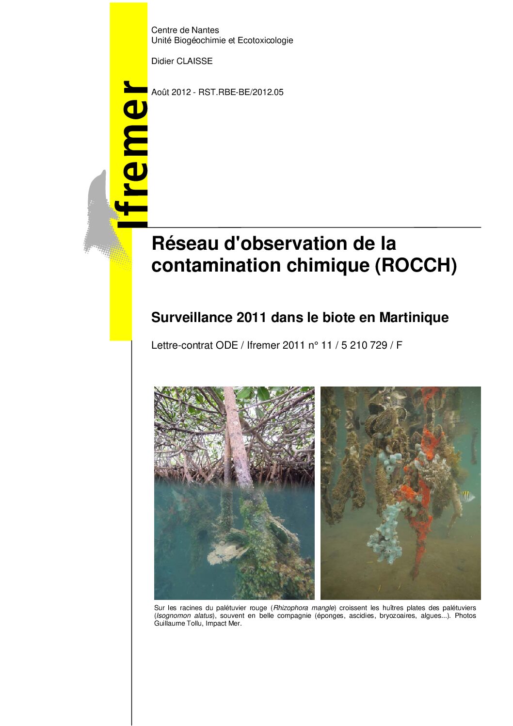 Ce rapport présente les actions menées et les résultats acquis en 2011 dans le cadre de la surveillance chimique du ROCCH (Réseau d’Observation de la Contamination chimique) en Martinique. Il est rédigé dans le cadre de la convention 2011 entre l’Office de l’Eau de la Martinique et l’Ifremer.