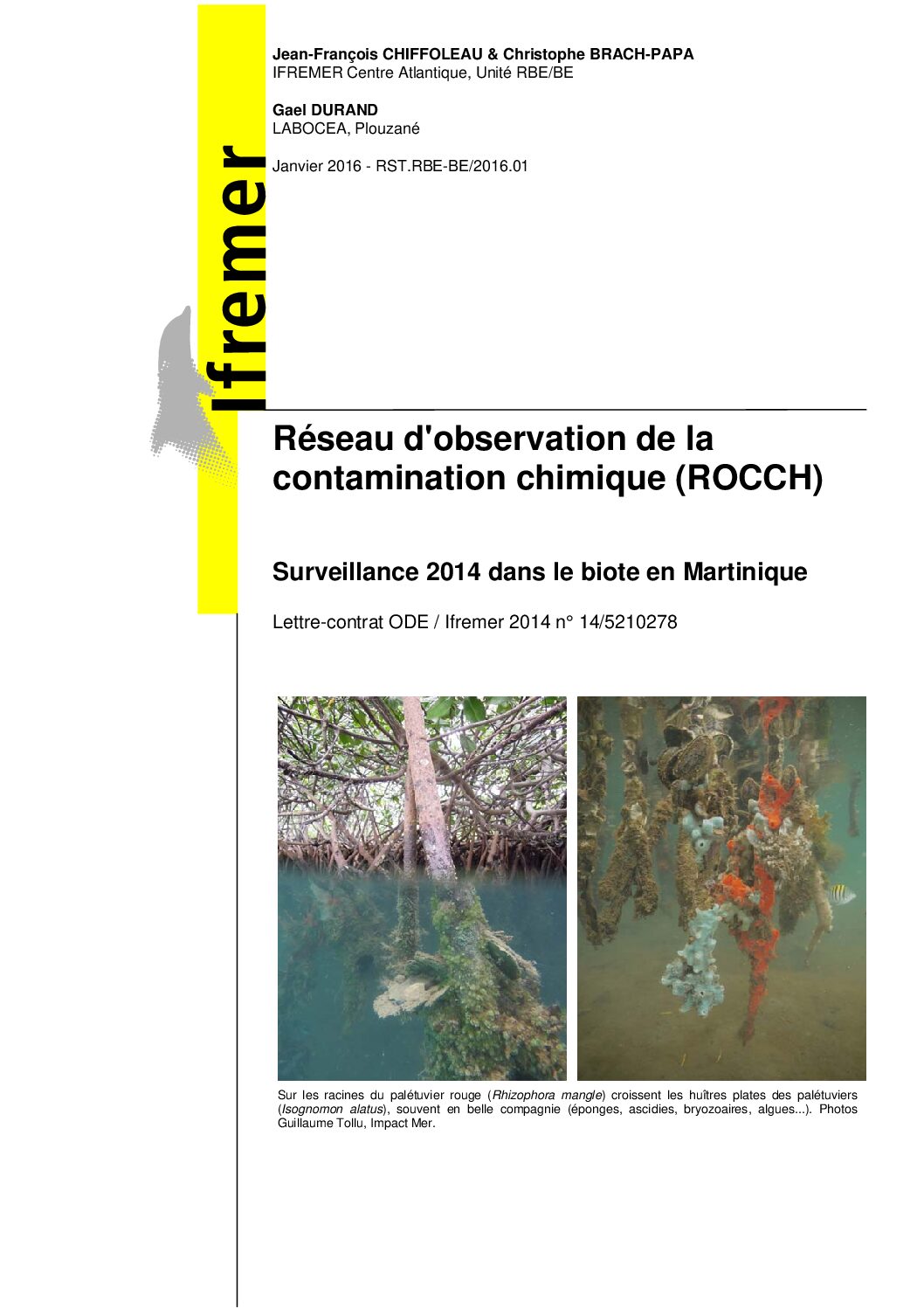 Réseau d'Observation de la Contamination Chimique (ROCCH) – Surveillance 2014 dans le biote en Martinique