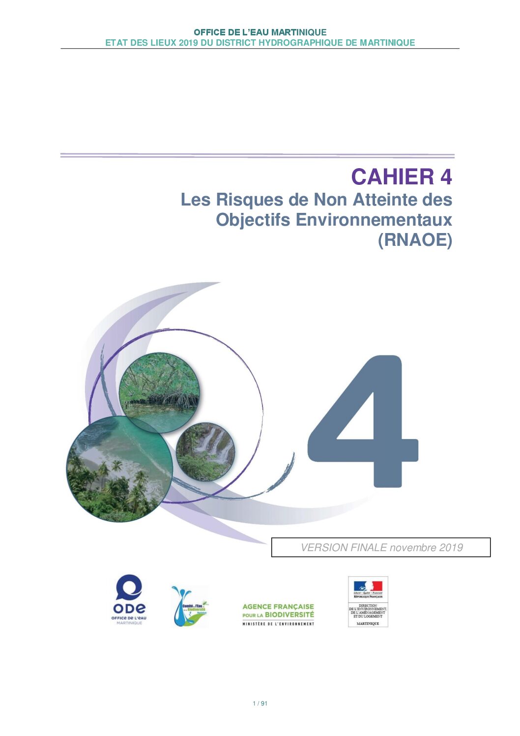 Révision de l'état des lieux 2019 du district hydrographique de la Martinique – Cahier n°4 Les risques de Non Atteinte des Objectifs Environnementaux (RNAOE)