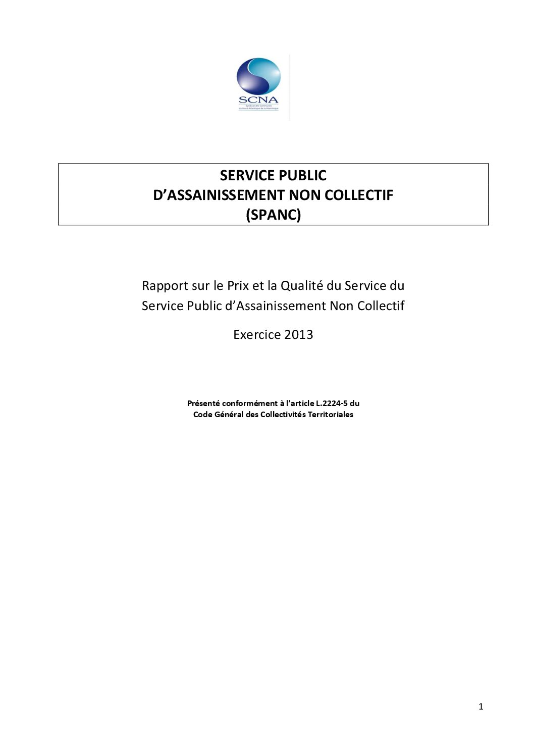 Le RPQS du service d’assainissement non collectif (SPANC) du SCNA – Exercice 2013