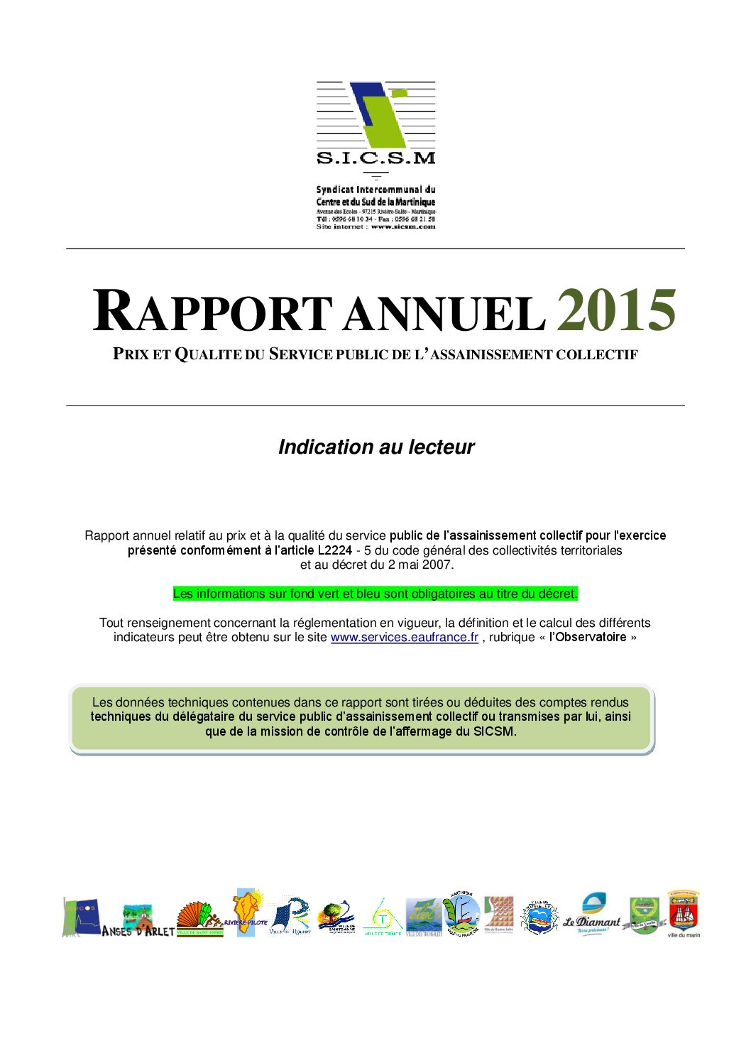 RPQS – Rapport annuel 2015 sur le prix et la qualité du service public d'assainissement collectif du SICSM