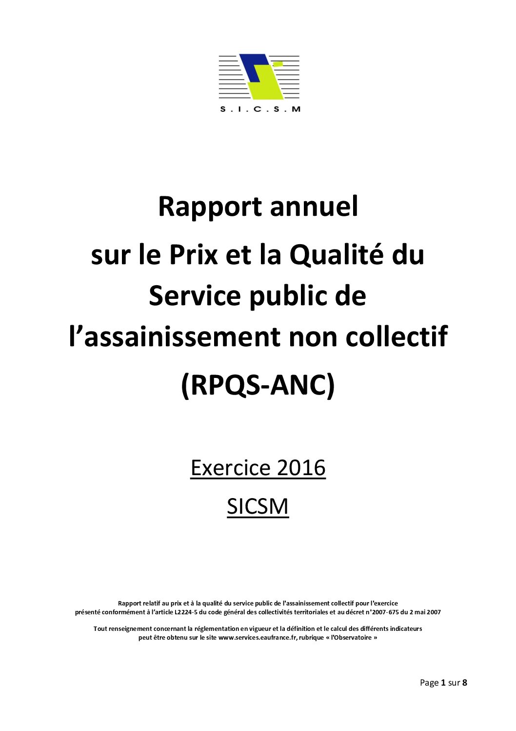 RPQS du SPANC (Service Public d’Assainissement Non Collectif) du SICSM pour l’exercice 2016.
