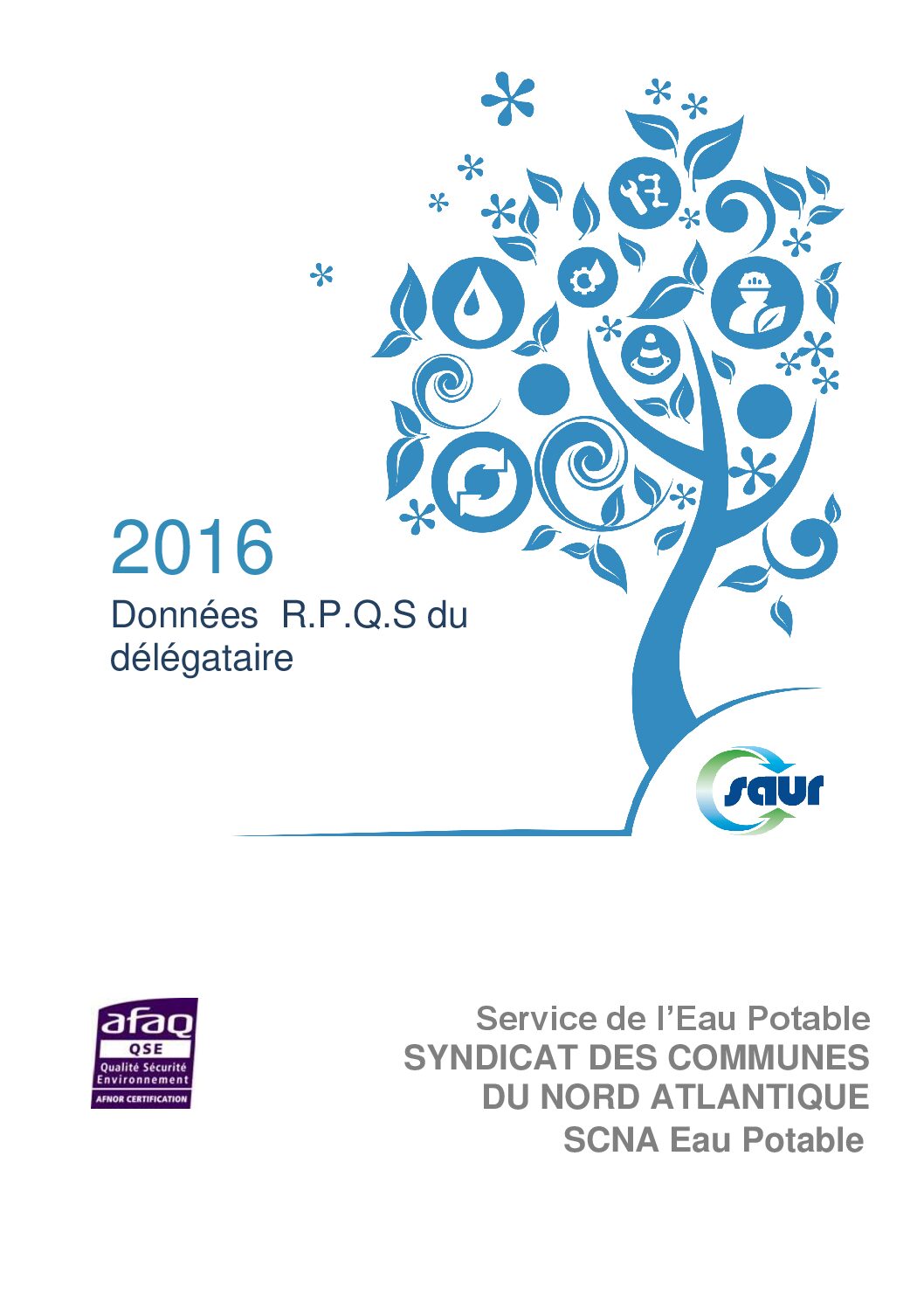 Rapport annuel 2016 sur le prix et la qualité du service public d’eau potable du Syndicat des Communes du Nord Atlantique.