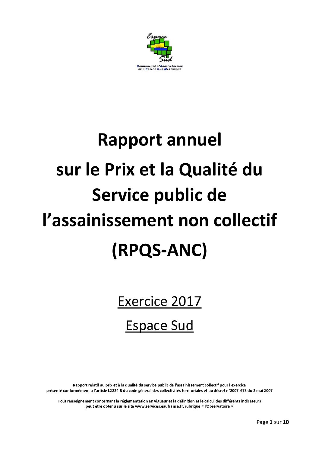 RPQS du SPANC (service public d’assainissement non collectif) de la CAESM (Communauté d’Agglomération de l’Espace Sud Martinique) pour l’exercice 2017.