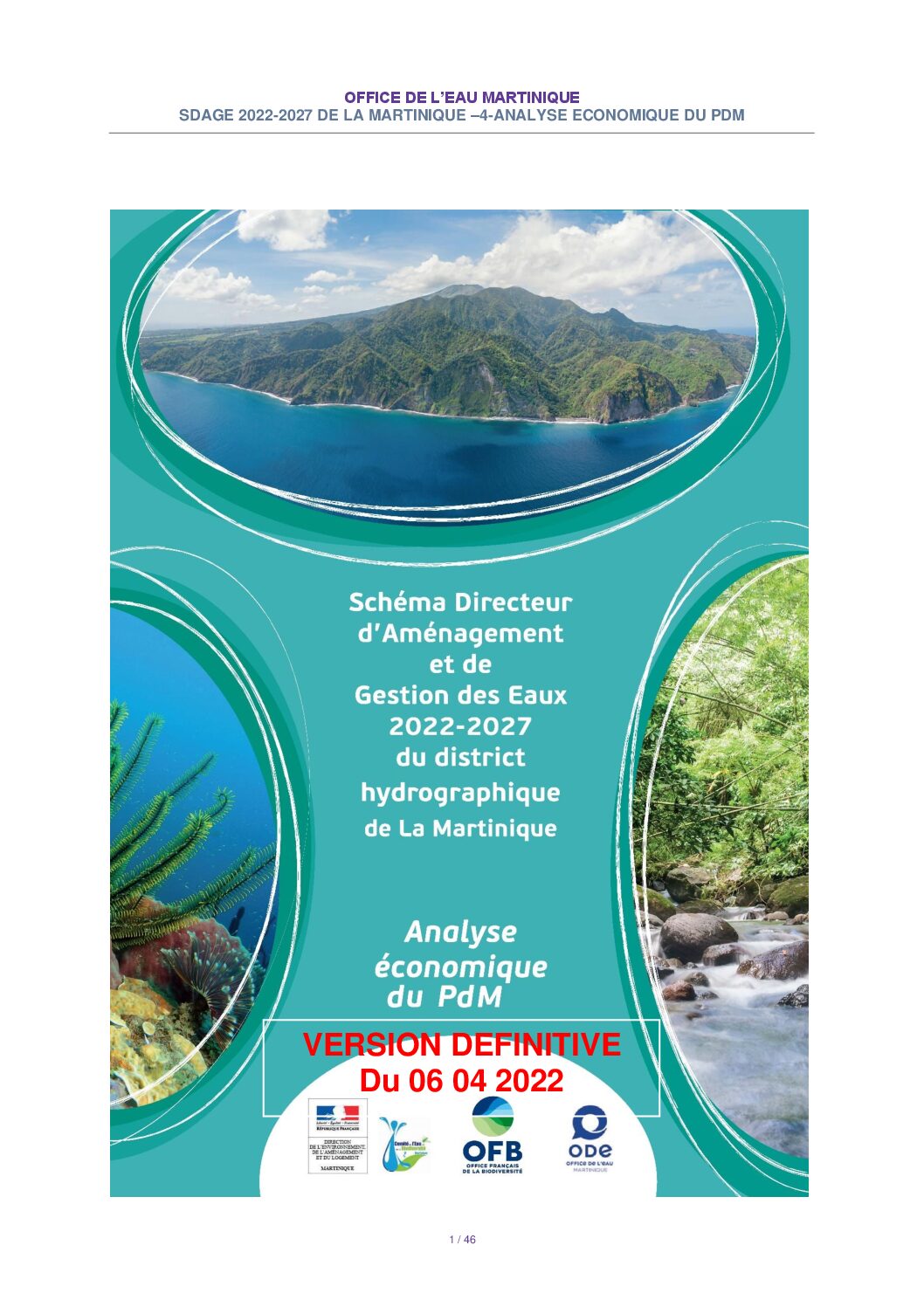 Schéma Directeur d'Aménagement et de Gestion des Eaux 2022-2027 du district hydrographique de la Martinique – Analyse économique du PdM (Version définitive 06/04/2022)