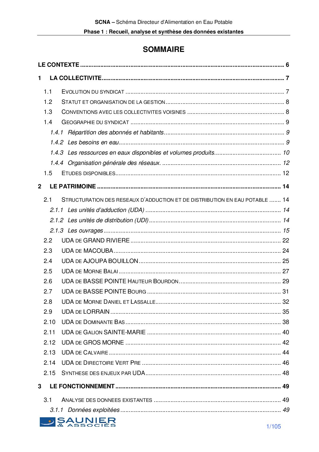 L’étude du schéma directeur d’alimentation en eau potable sur le territoire du SCNA comprend 4 phases principales dont la 1ère est présentée dans ce rapport :