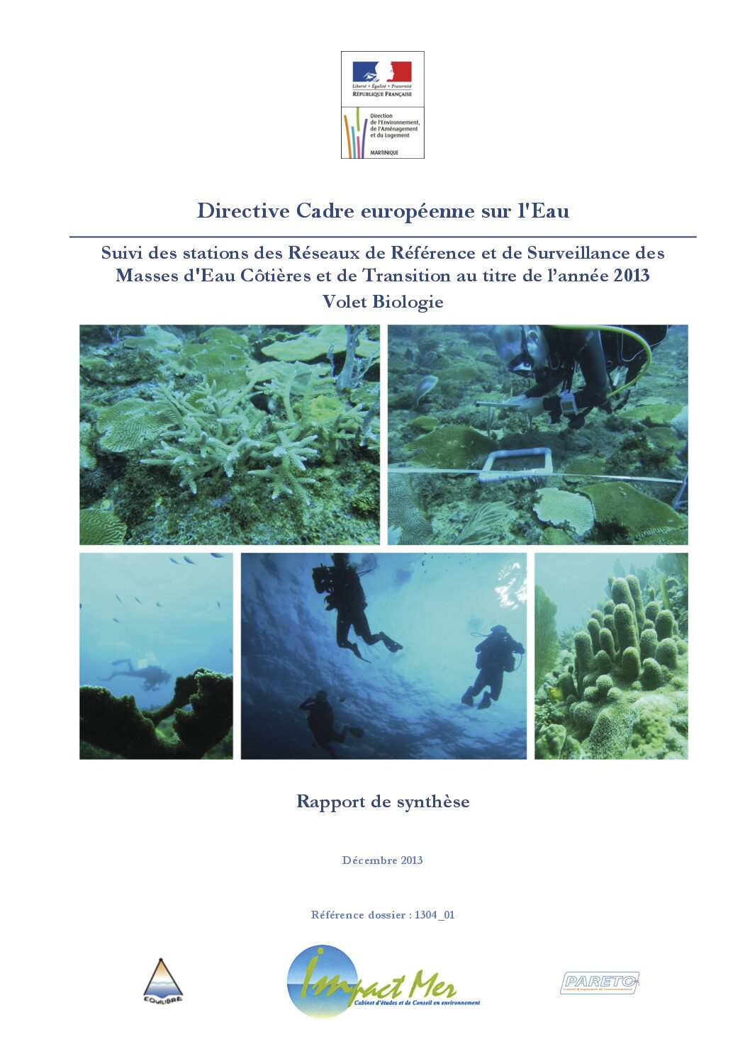 Rapport de synthèse du Suivi des stations des Réseaux de Référence et de Surveillance des Masses d’Eau Côtières et de Transition au titre de l’année 2013 – Volet Biologie.
