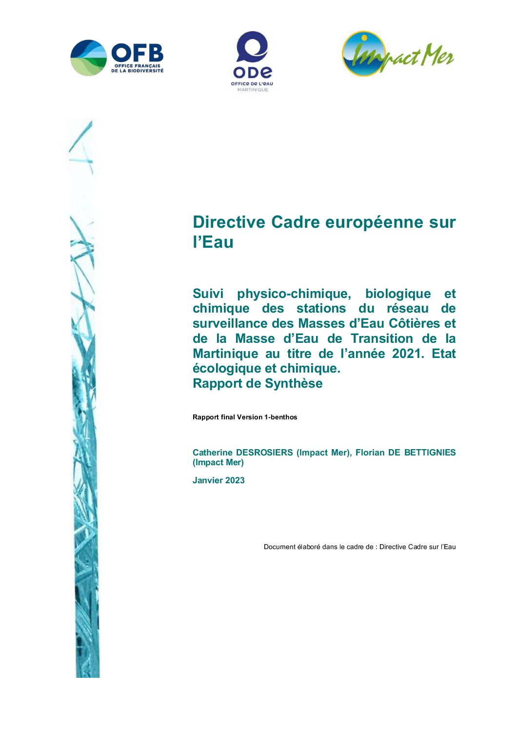 La Directive Cadre sur l’Eau (DCE) établit un cadre pour la protection des masses d’eau (ME) de l’ensemble des pays européens. La Martinique, puis la Guadeloupe, ont été les premiers DOM à avoir mis en place un suivi DCE dans leurs masses d’eau littorales. Cela a nécessité le développement de méthodologies « DCE compatibles » adaptées au contexte insulaire antillais ainsi que l’élaboration de grilles de qualité. Avec l’aquisition des données au cours des années, plusieurs indicateurs ont pu être validés tandis que certains protocoles et indicateurs sont toujours en cours de développement. L’Arrêté du 2 juillet 2018 relatif aux méthodes et critères d’évaluation de l’état écologique et de l’état chimique décrit la méthodologie pour définir un niveau de confiance à l’état écologique et à l’état chimique, sur la base de données collectées ou de dire d’experts et selon le nombre de paramètres utilisés pour l’évaluation.