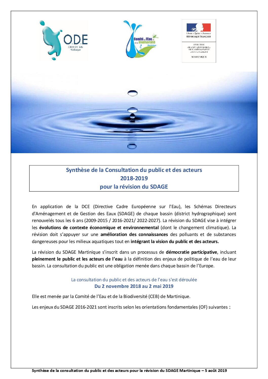 La consultation du public et des acteurs de l’eau s’est déroulée du 2 novembre 2018 au 2 mai 2019.