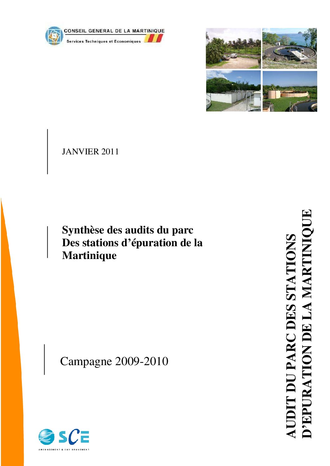 Conscient des enjeux liés à l’assainissement, le Conseil Général de la Martinique a engagé, depuis 1992, un suivi des stations d’épuration, sous forme d’audits annuels afin d’améliorer la connaissance des systèmes d’assainissement du département, de suivre l’évolution des performances épuratoires des différentes stations d’épuration mais également d’apporter une aide technique aux maîtres d’ouvrage.