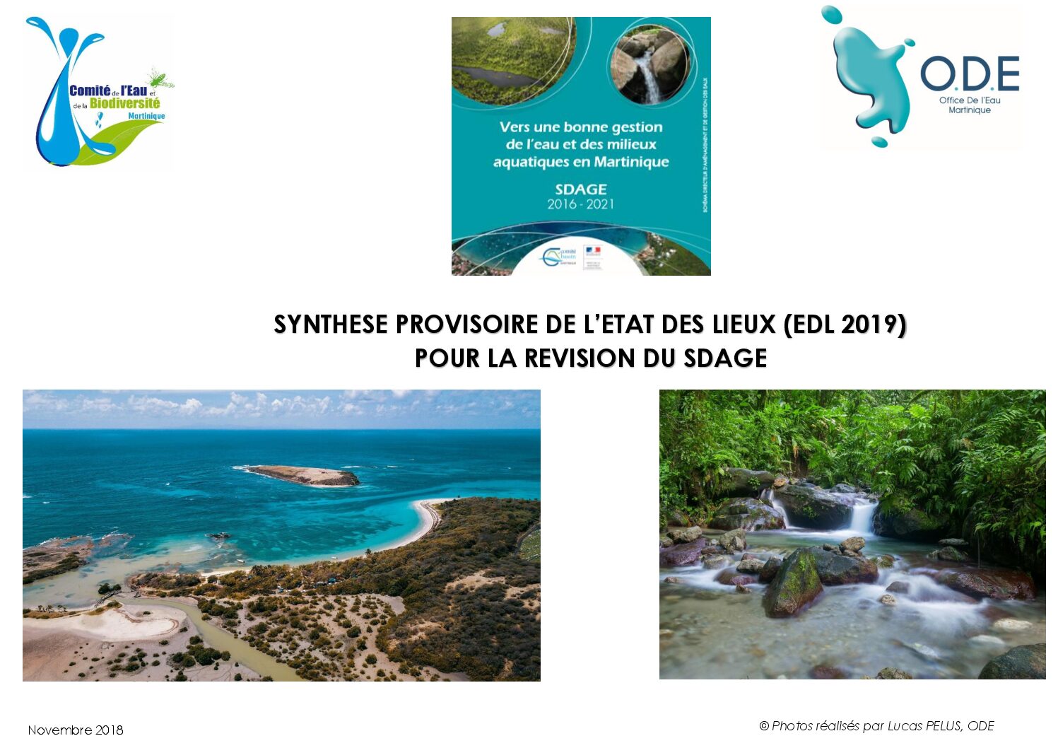 Synthèse provisoire de l’Etat des lieux 2019 du district hydrographique de la Martinique pour la révision du SDAGE.