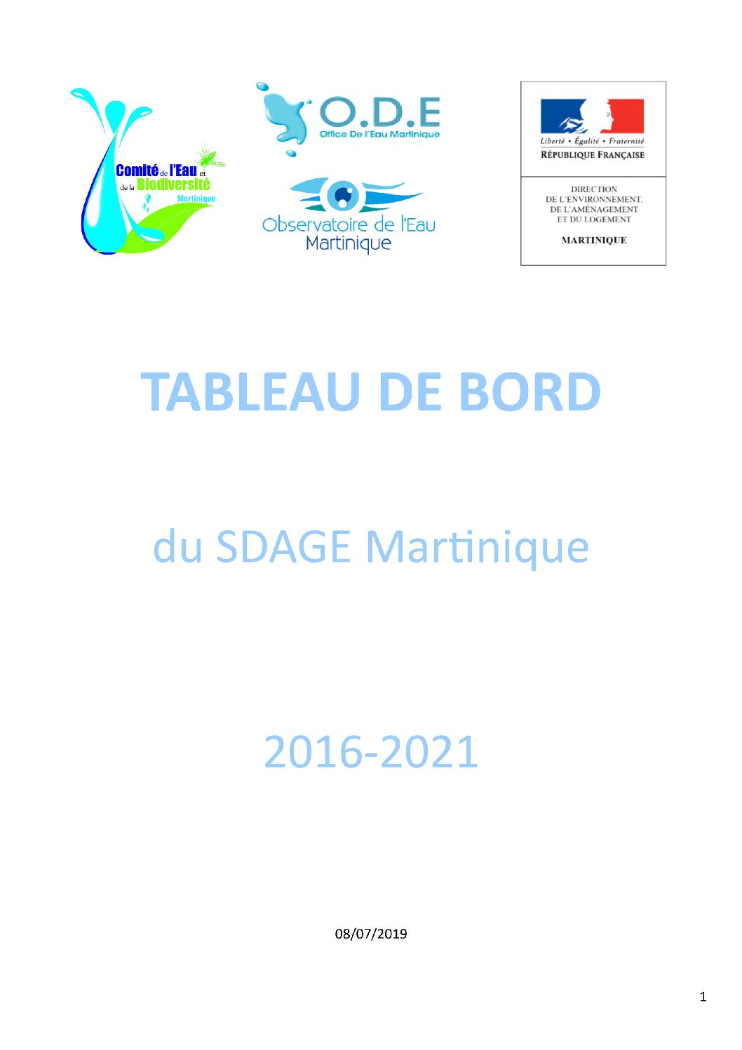 Ce tableau de bord fait le bilan à mi-parcours de la mise en oeuvre du SDAGE 2016-2021 de la Martinique.