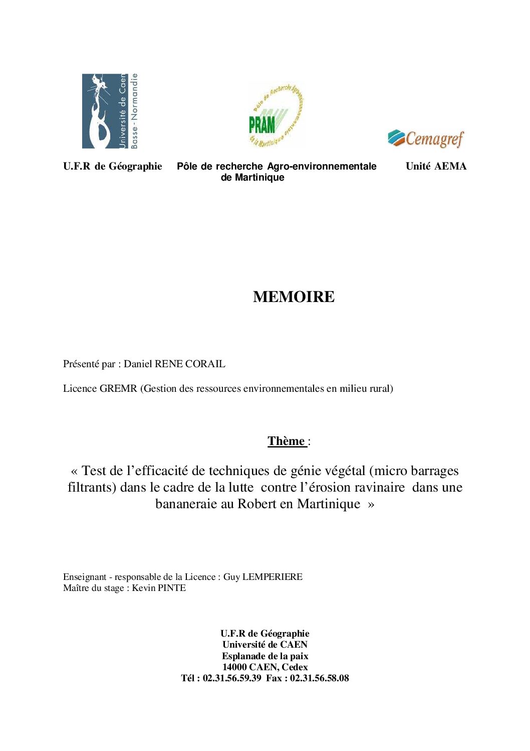 RENE CORAIL Daniel/Cemagref Martinique/PRAM/UFR de géographie de Caen