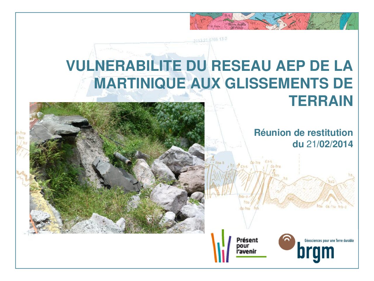 Vulnérabilité du réseau d’alimentation en eau potable de la Martinique aux glissements de terrain – Réunion de restitution du 21/02/2014.