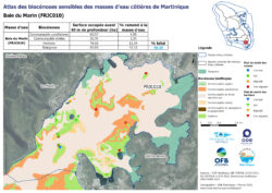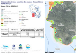 Biocénoses benthiques, Eaux côtières: Biocénoses sensibles de la masse d'eau côtière FRJC019 – Eux côtières du Sud et Rocher du Diamant