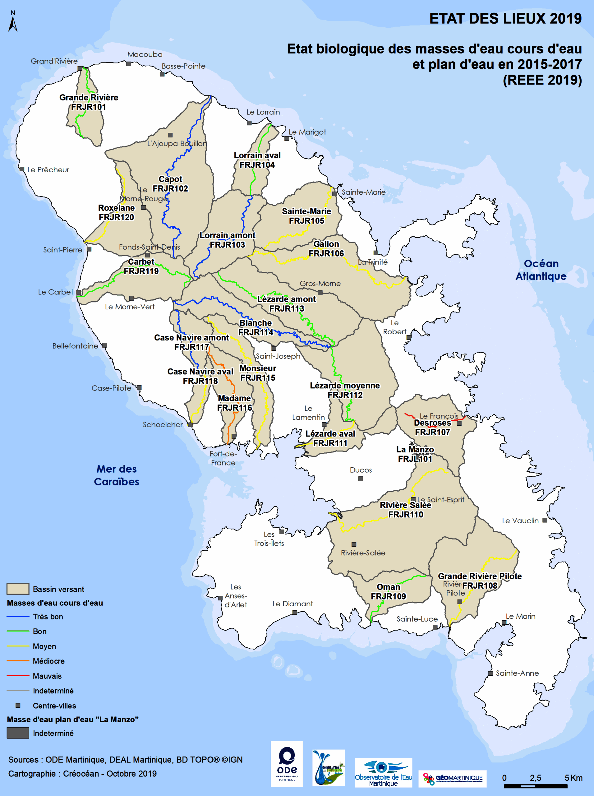 État des lieux 2019 – État biologique des masses d'eau cours d'eau et plan d'eau 2015-2017 (REEE 2019)