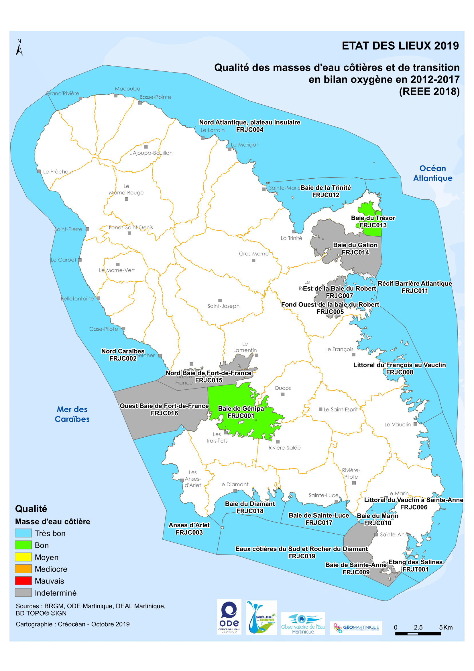 État des lieux 2019 – Qualité des masses d'eau côtières et de transition en bilan oxygène en 2012-2017 (REEE 2018)