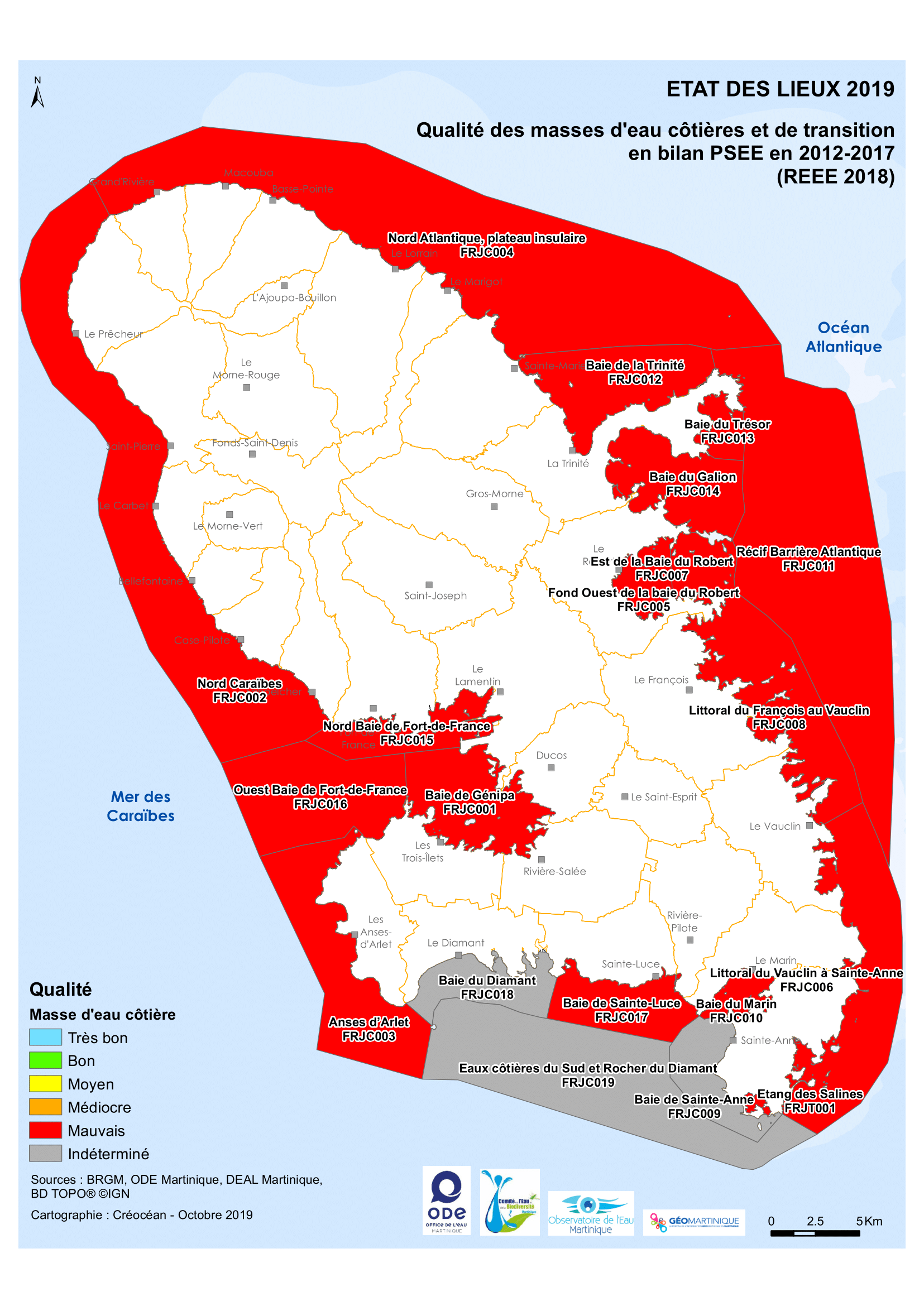 État des lieux 2019 – Qualité des masses d'eau côtières et de transition en bilan PSEE en 2012-2017 (REEE 2018)