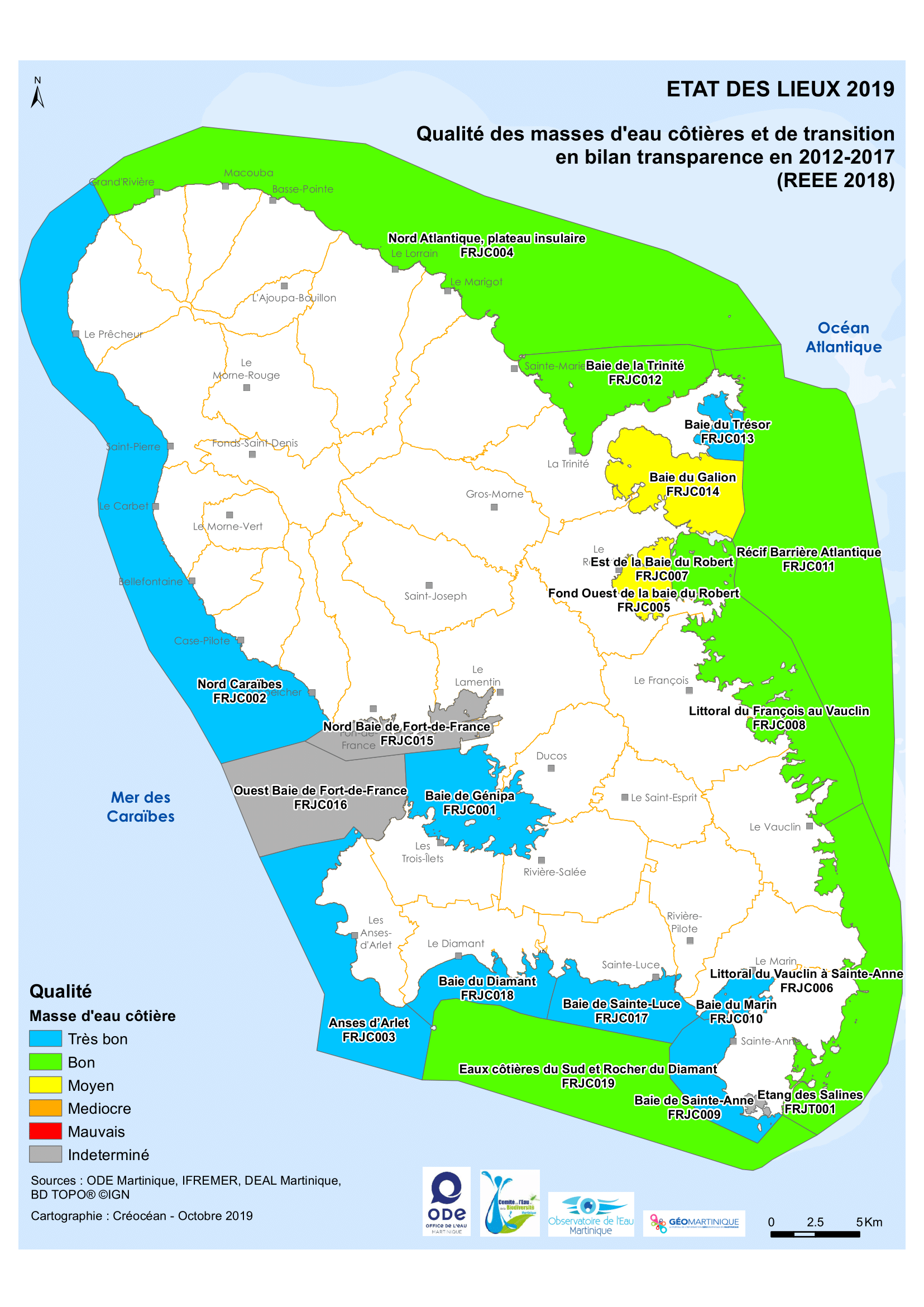 État des lieux 2019 – Qualité des masses d'eau côtières et de transition en bilan transparence en 2012-2017 (REEE 2018)