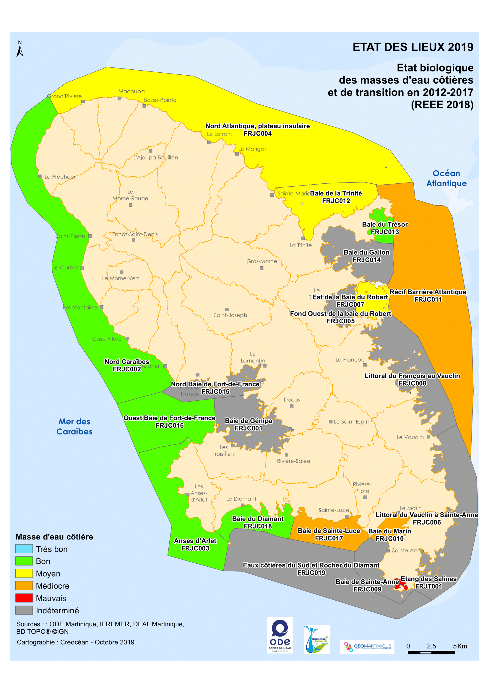 État des lieux 2019 – État biologique des masses d'eau côtières et de transition en 2012-2017 (REEE 2018)
