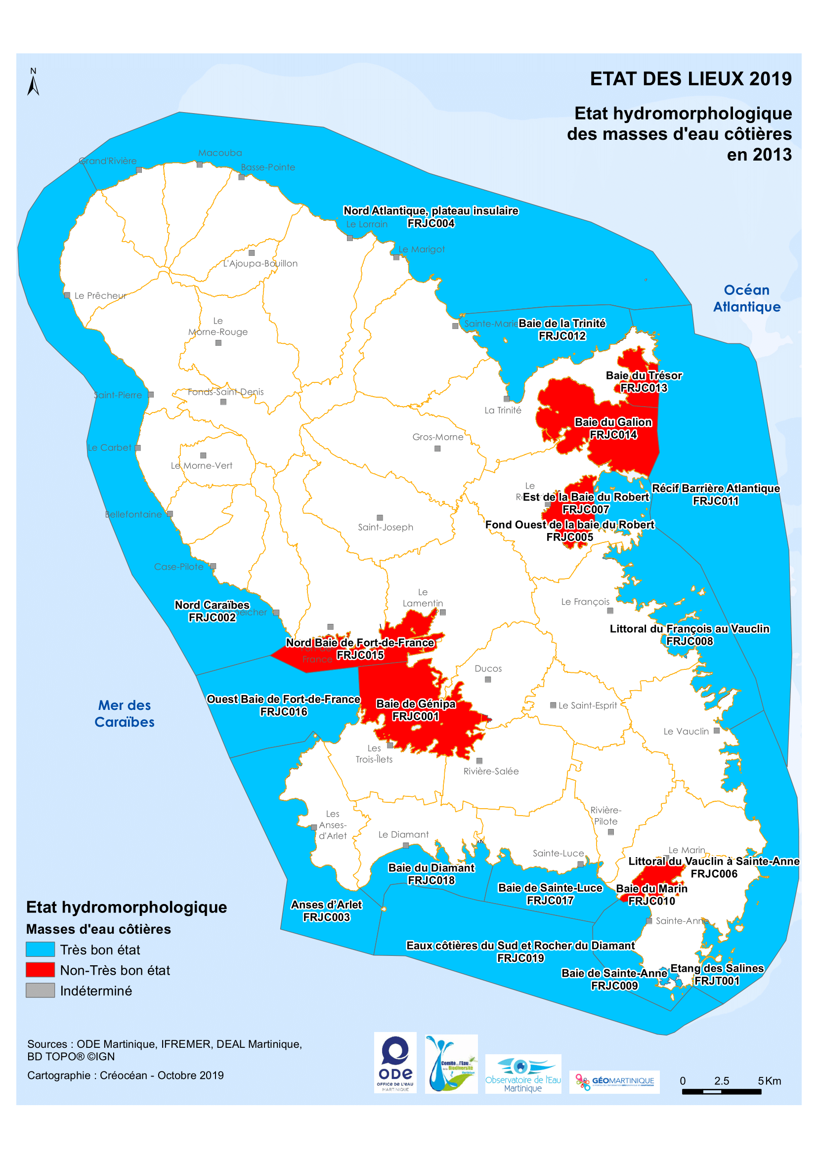 État des lieux 2019 – État hydromorphologique des masses d'eau côtières en 2013