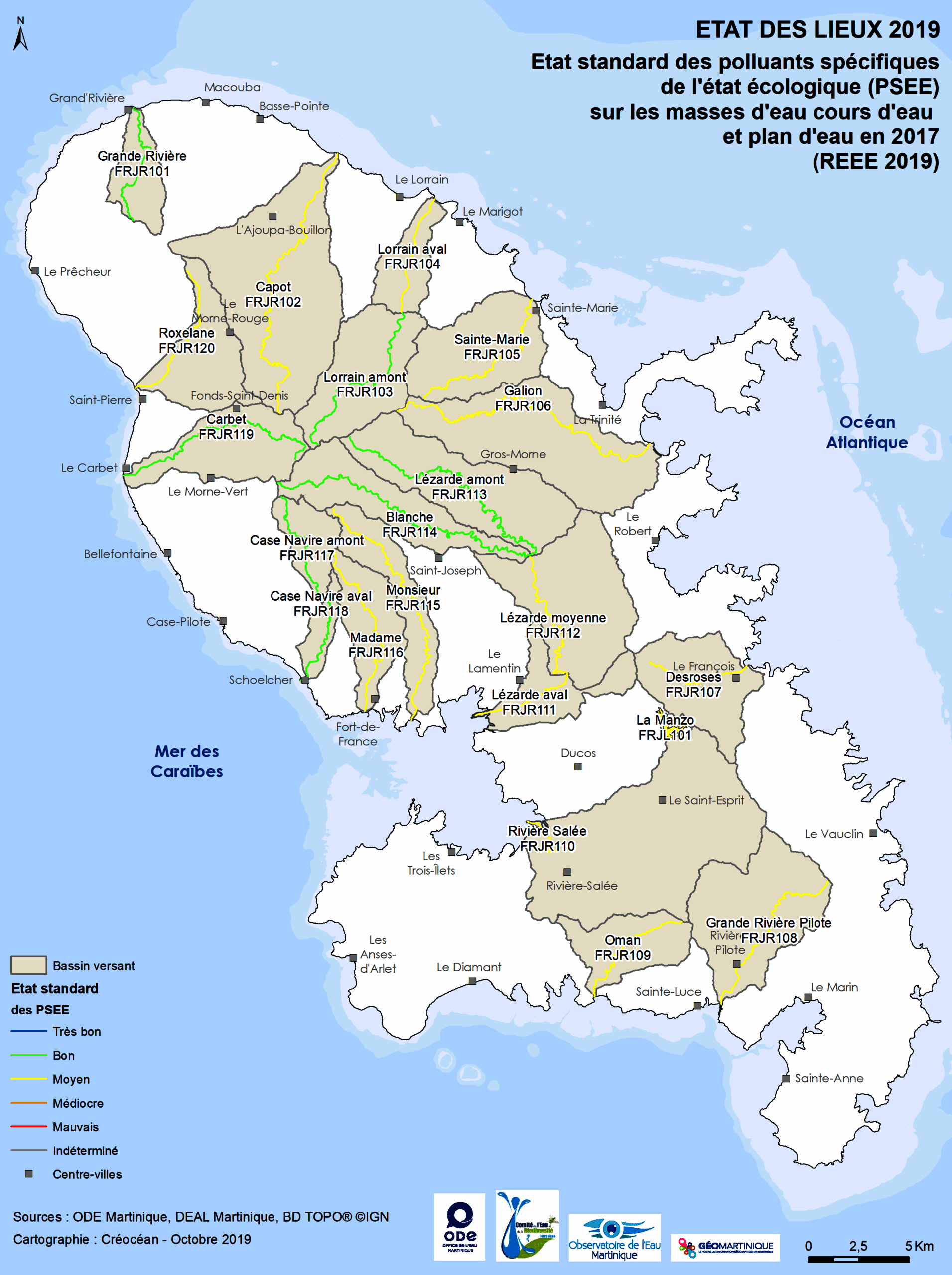 Cours d'eau, État des lieux 2019, Risque de non-atteinte des objectifs environnementaux (RNAOE), Suivi DCE de la Manzo : État des lieux 2019 – État standard des polluants spécifiques de l’état écologique (PSEE) sur les masses d’eau cours d’eau et plan d’eau en 2017 (REEE 2019)