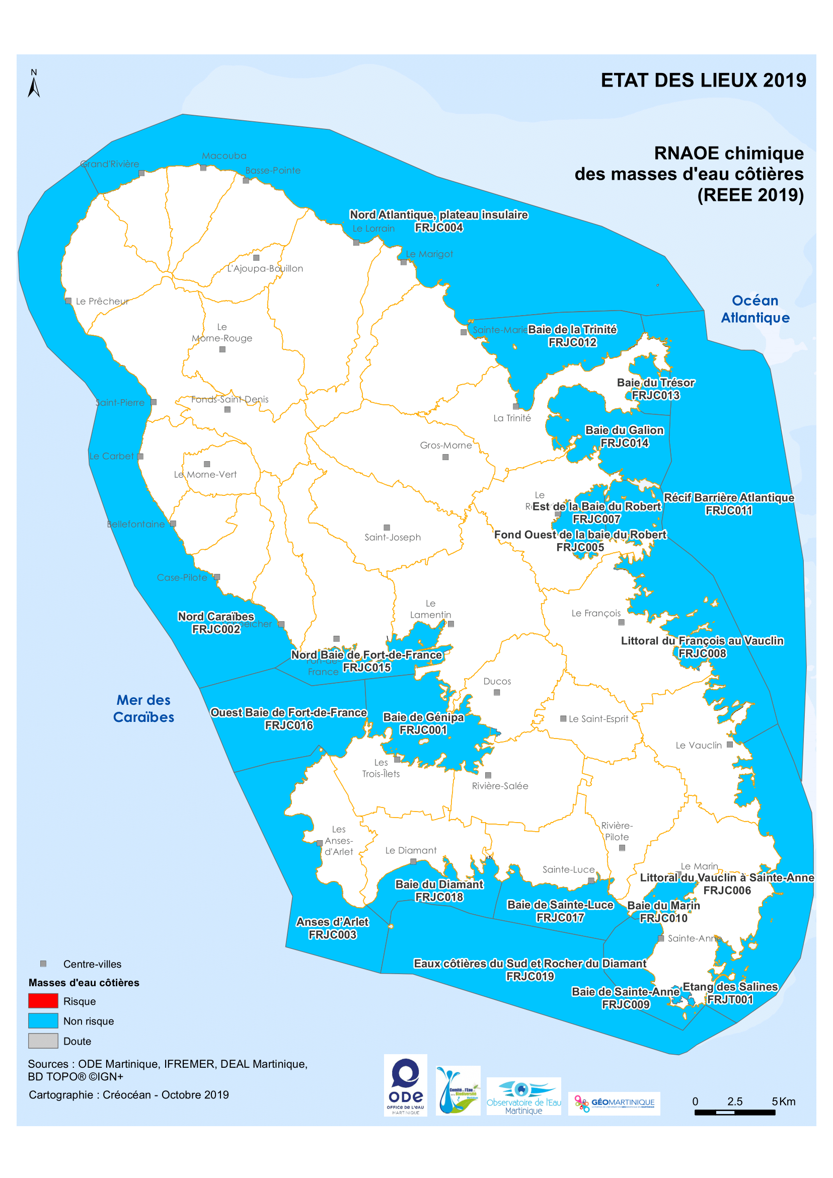 État des lieux 2019 – Risque de non-atteinte des objectifs environnementaux de l'état chimique des masses d'eau côtières (REEE 2019)