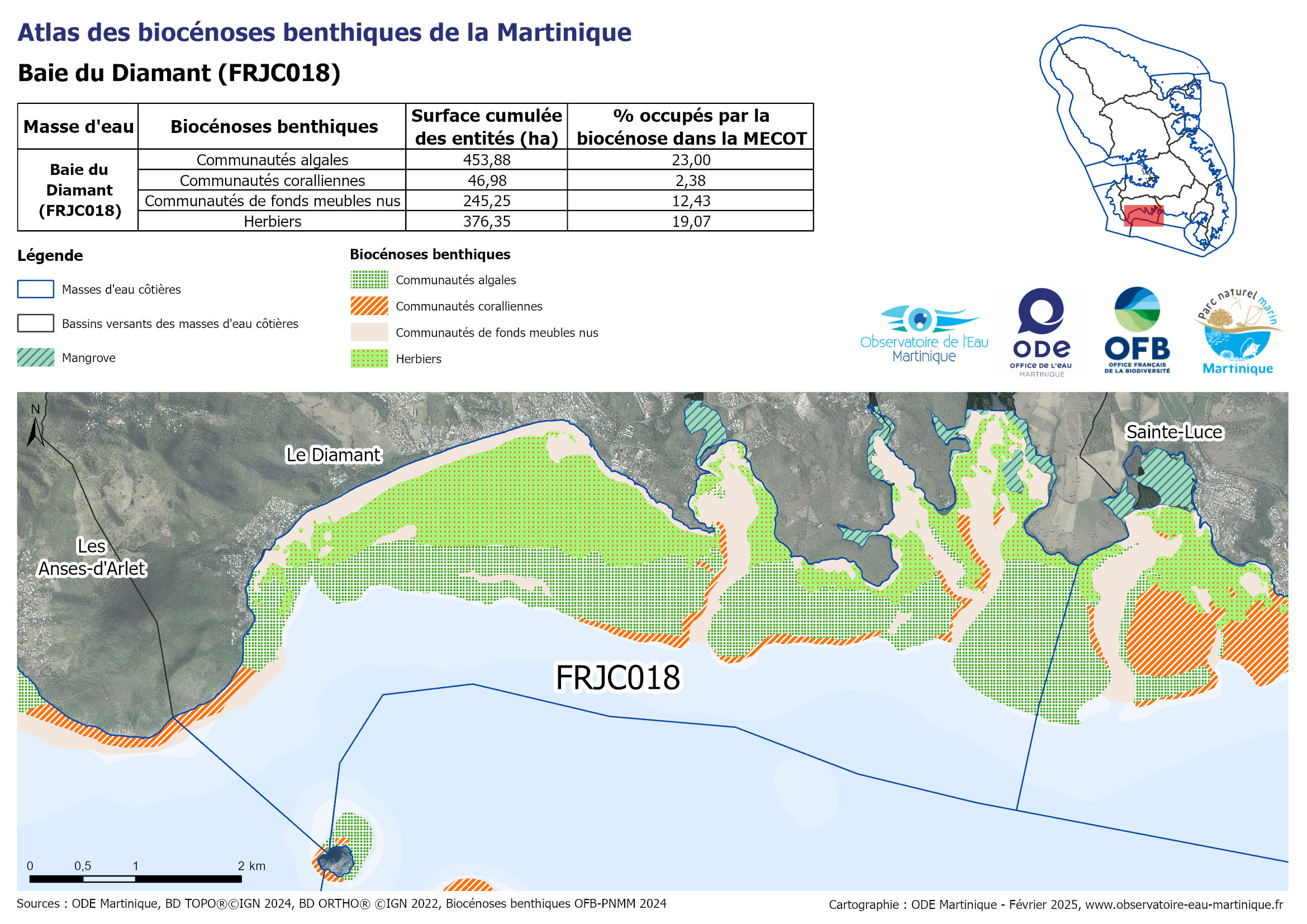 Atlas des biocénoses benthiques 2024 – Baie du Diamant (FRJC018)