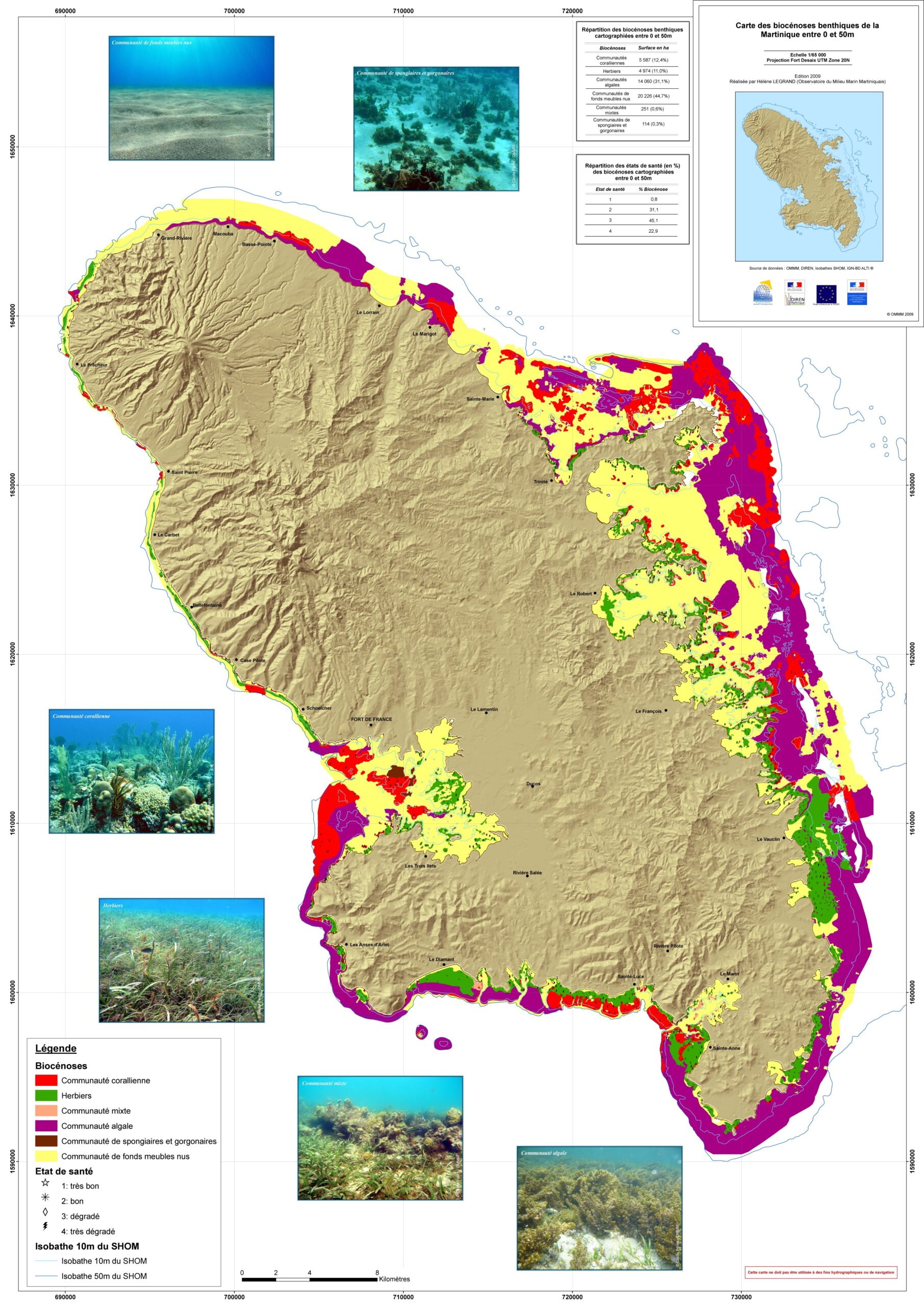 Carte des biocénoses benthiques de la Martinique entre 0 et 50 mètres