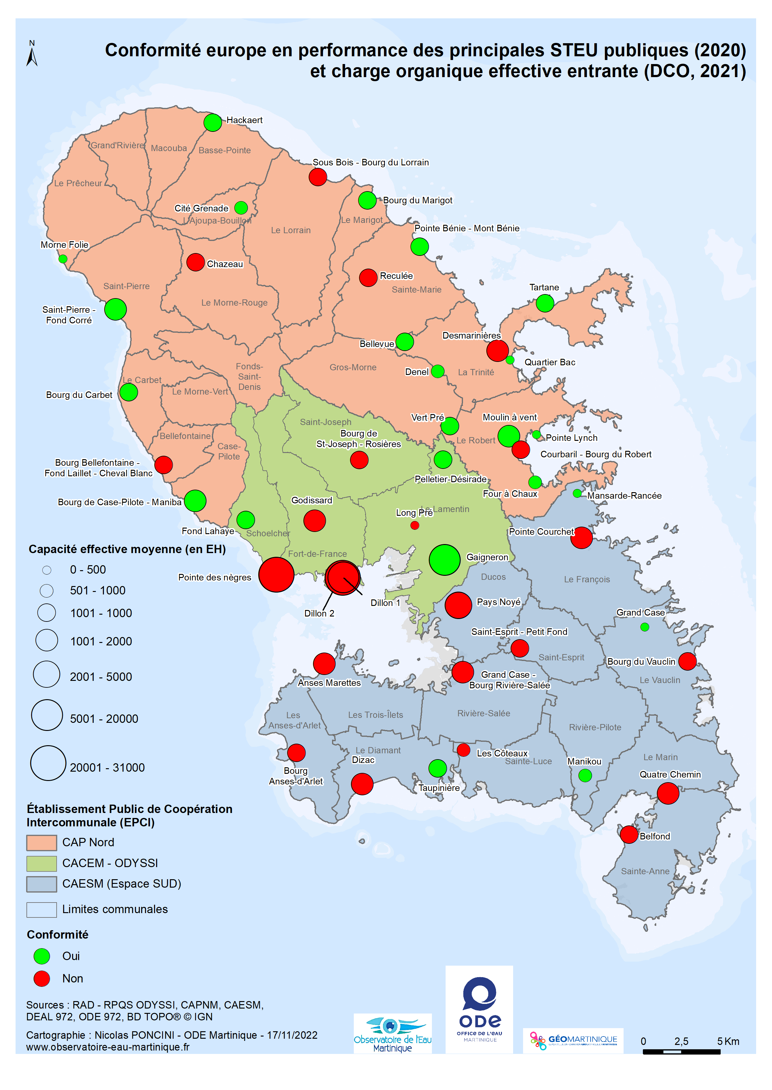 Conformité europe des Stations de traitement des Eaux Usées (STEU) publiques en Martinique et charge organique effective entrante