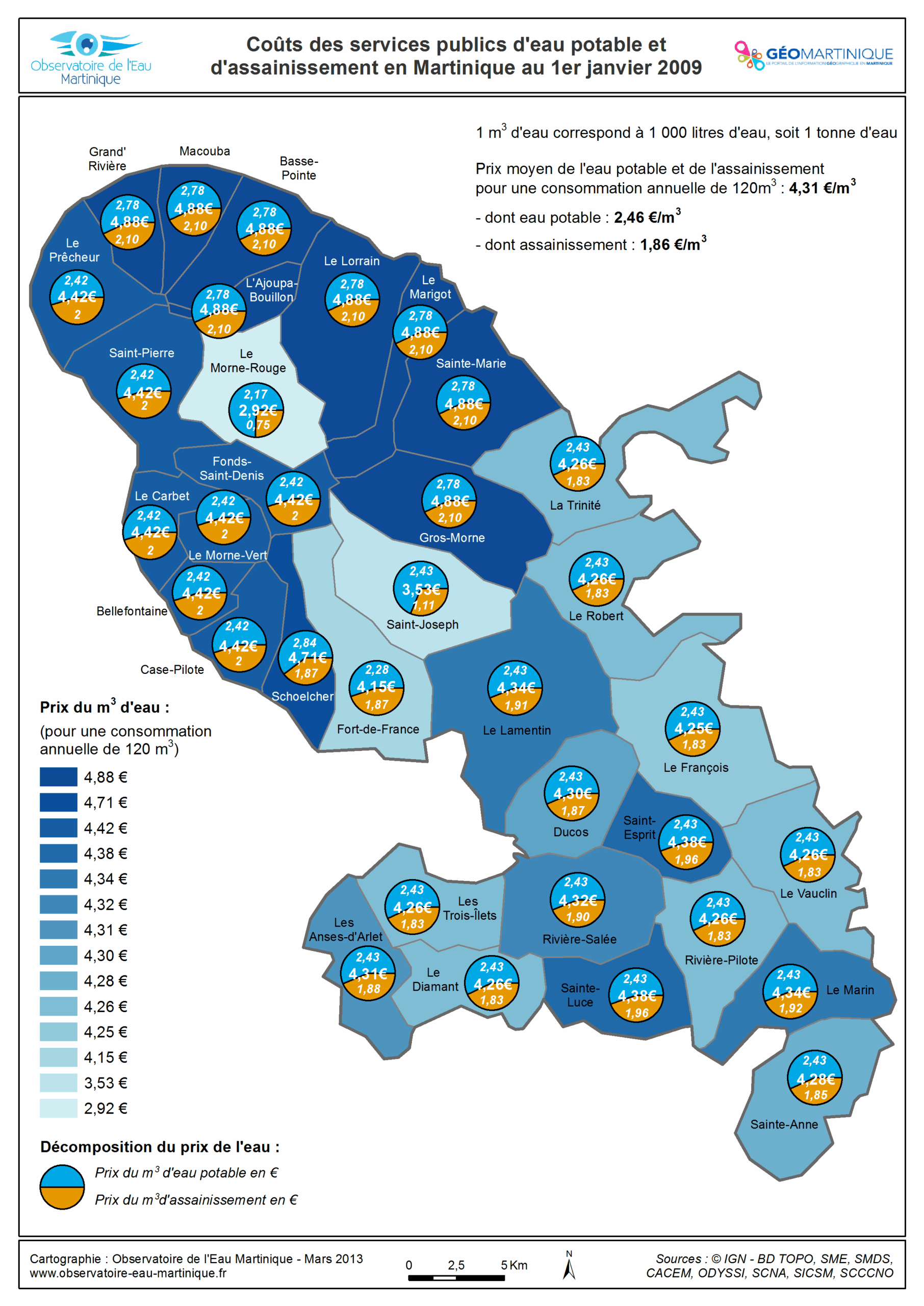 Coût des services publics d'eau et d'assainissement en Martinique au 1er janvier 2010
