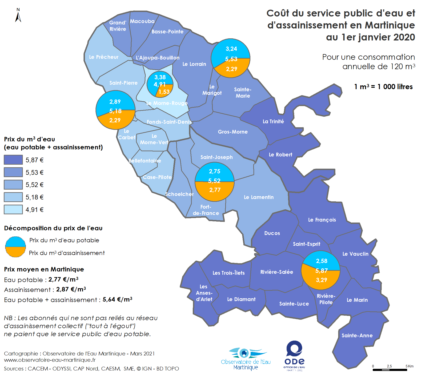 Coût des services publics d'eau et d'assainissement en Martinique au 1er janvier 2020