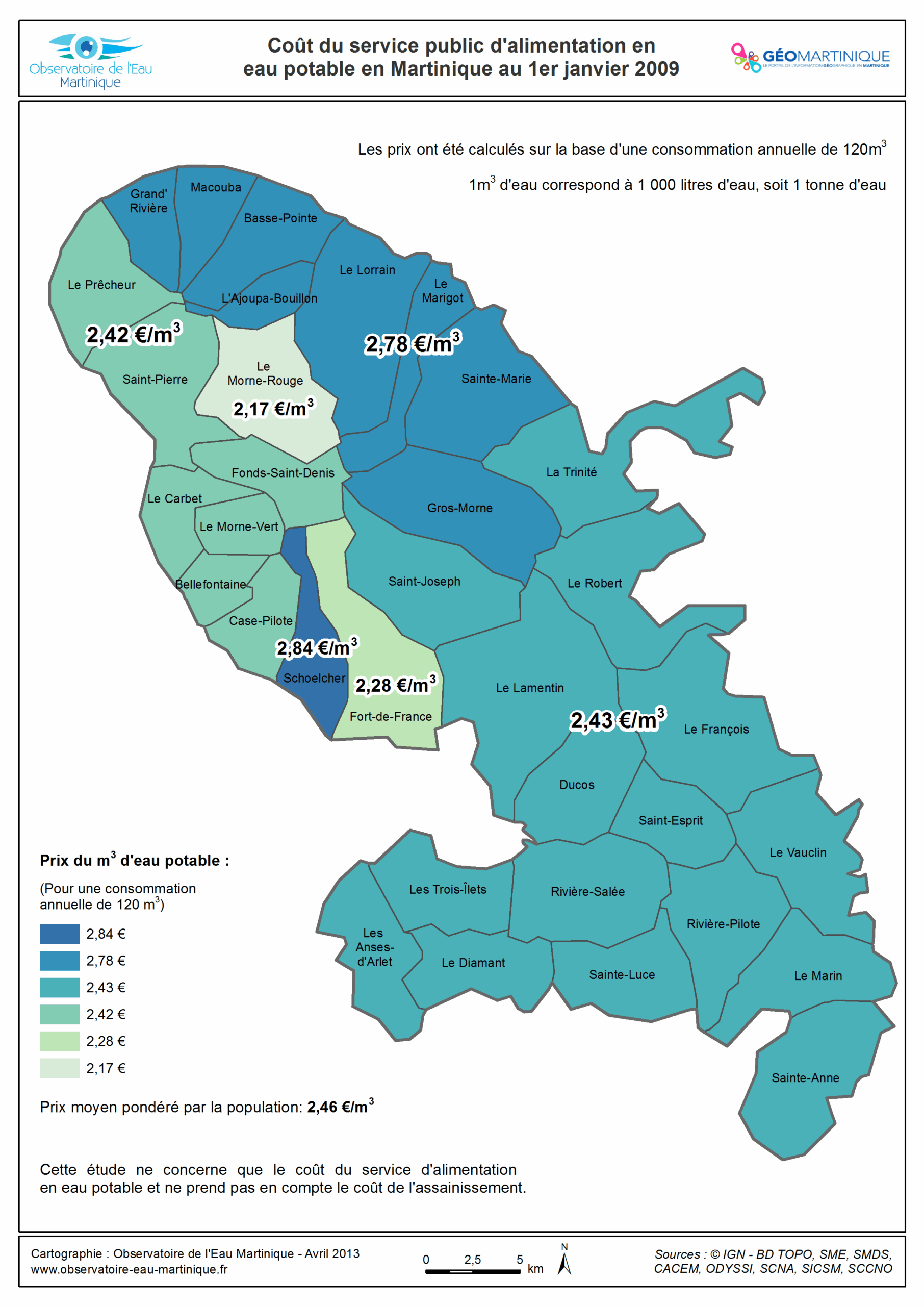 Coût du service public d'eau potable en Martinique au 1er janvier 2009