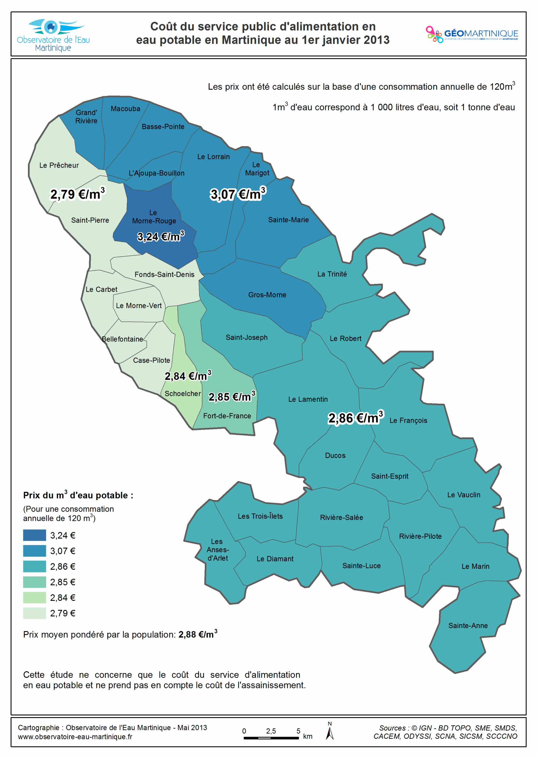 Coût du service public d'eau potable en Martinique au 1er janvier 2013