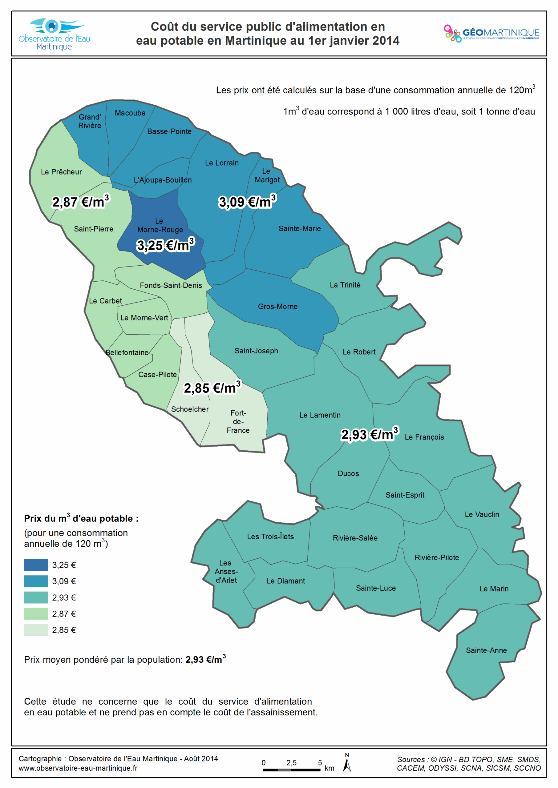 Coût du service public d'eau potable en Martinique au 1er janvier 2014