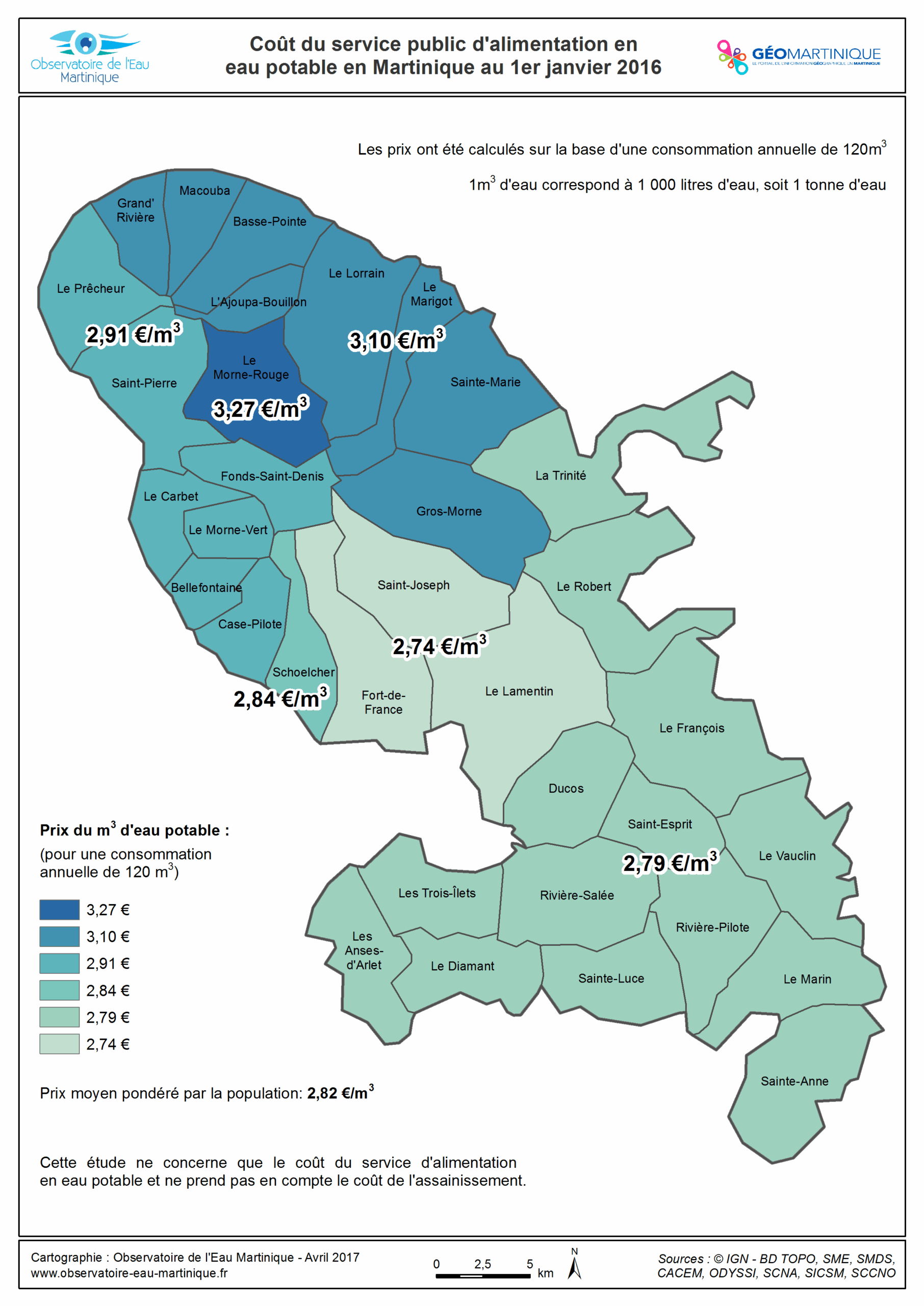 Coût du service public d'eau potable en Martinique au 1er janvier 2016