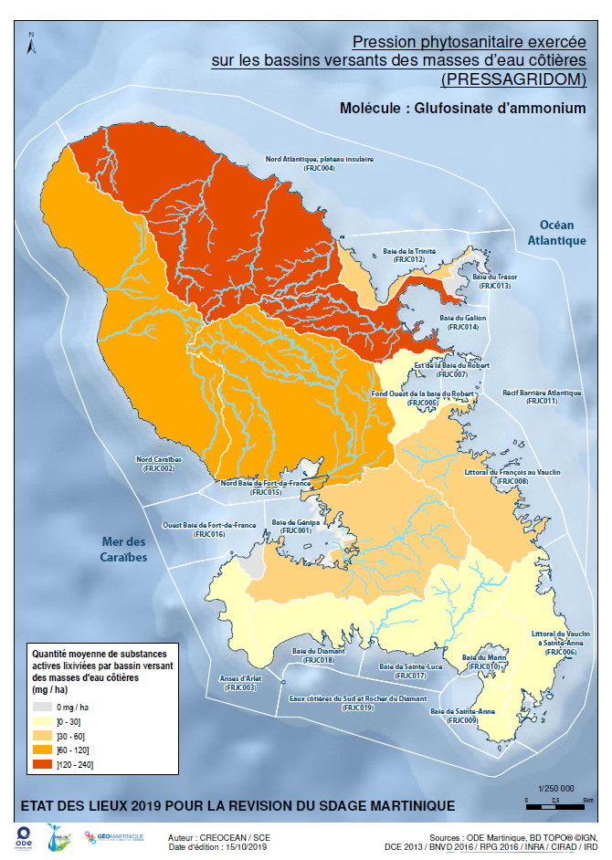 EDL 2019 – Pression phytosanitaire exercée sur les bassins versants des masses d'eau côtières (PRESSAGRIDOM) – Molécule : Gluphosinate d'ammonium