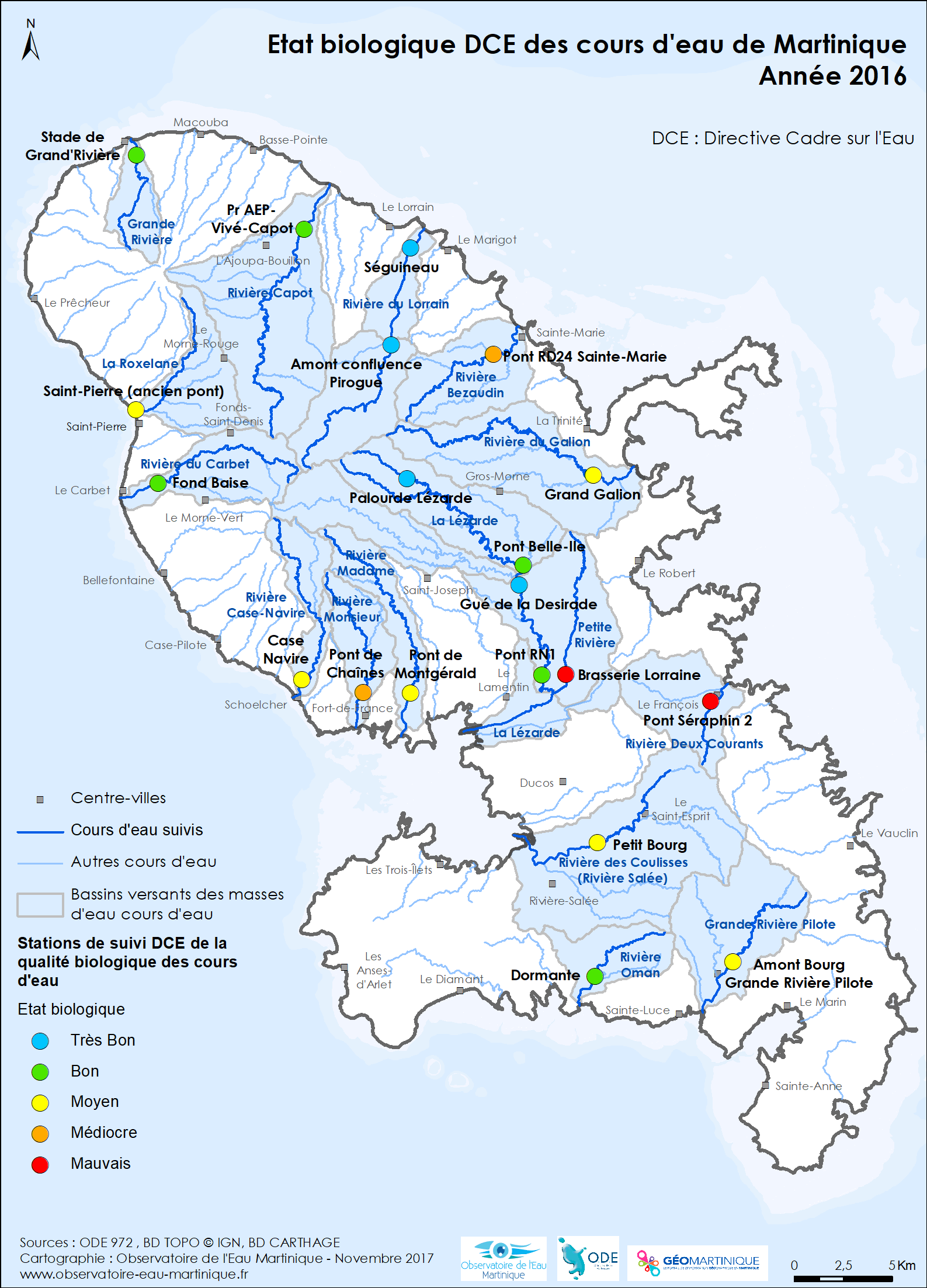 État biologique DCE des cours d'eau de Martinique en 2016