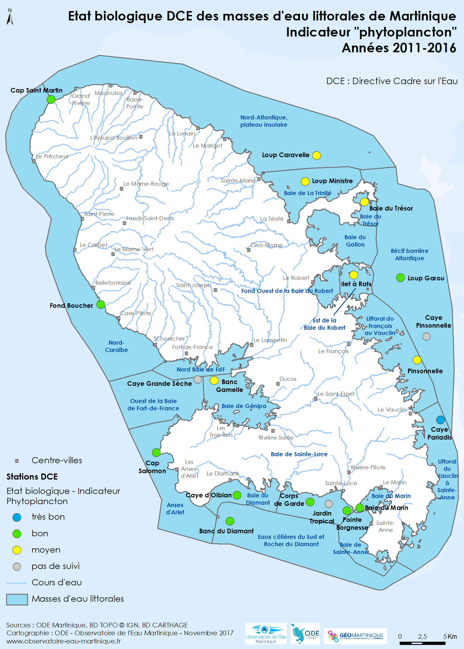 Etat biologique DCE des masses d'eau littorales de Martinique – Indicateur ''phytoplancton'' – Années 2011-2016