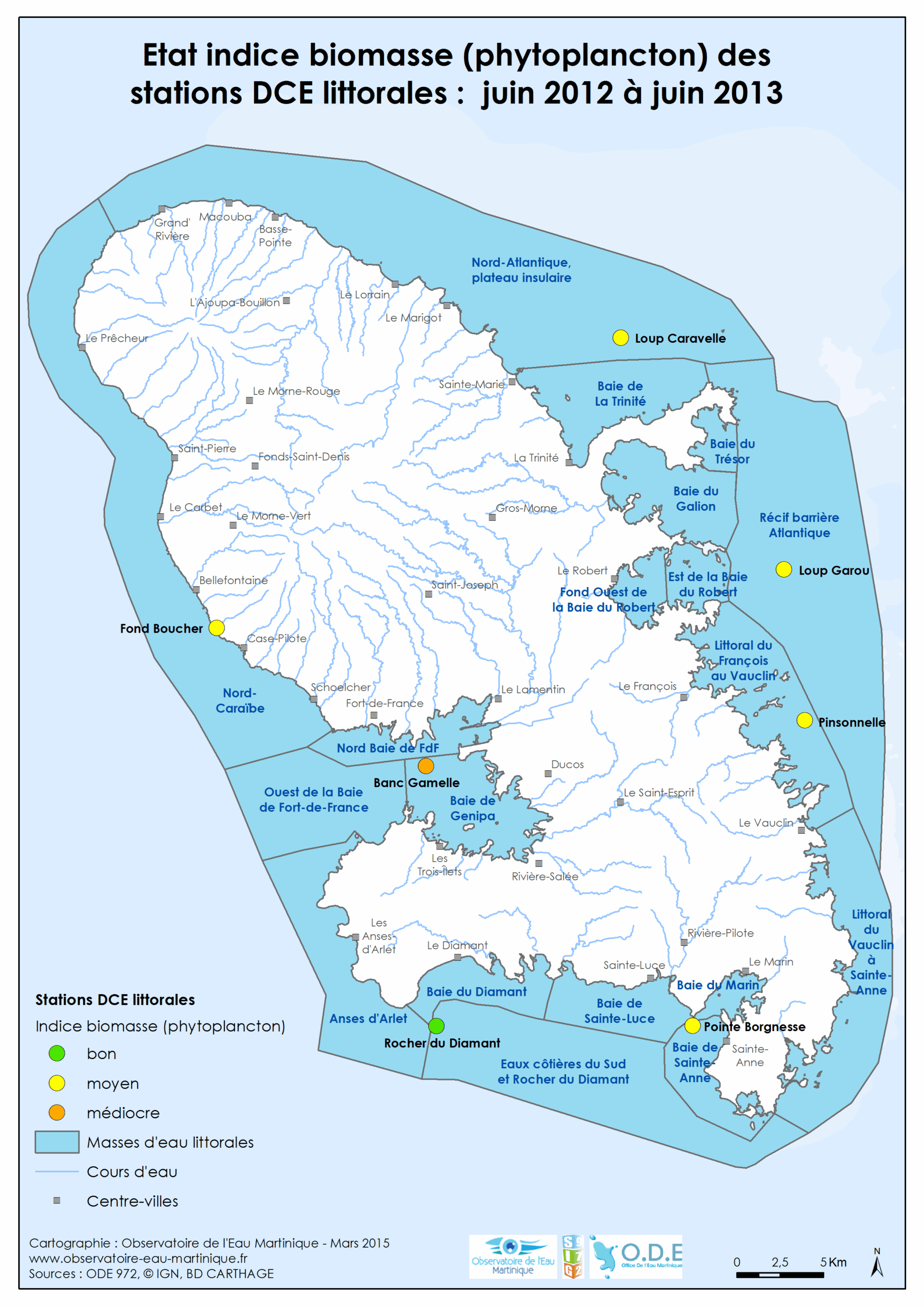 Etat biologique DCE des masses d'eau littorales de Martinique – Indicateur ''phytoplancton'' – Années 2012-2013