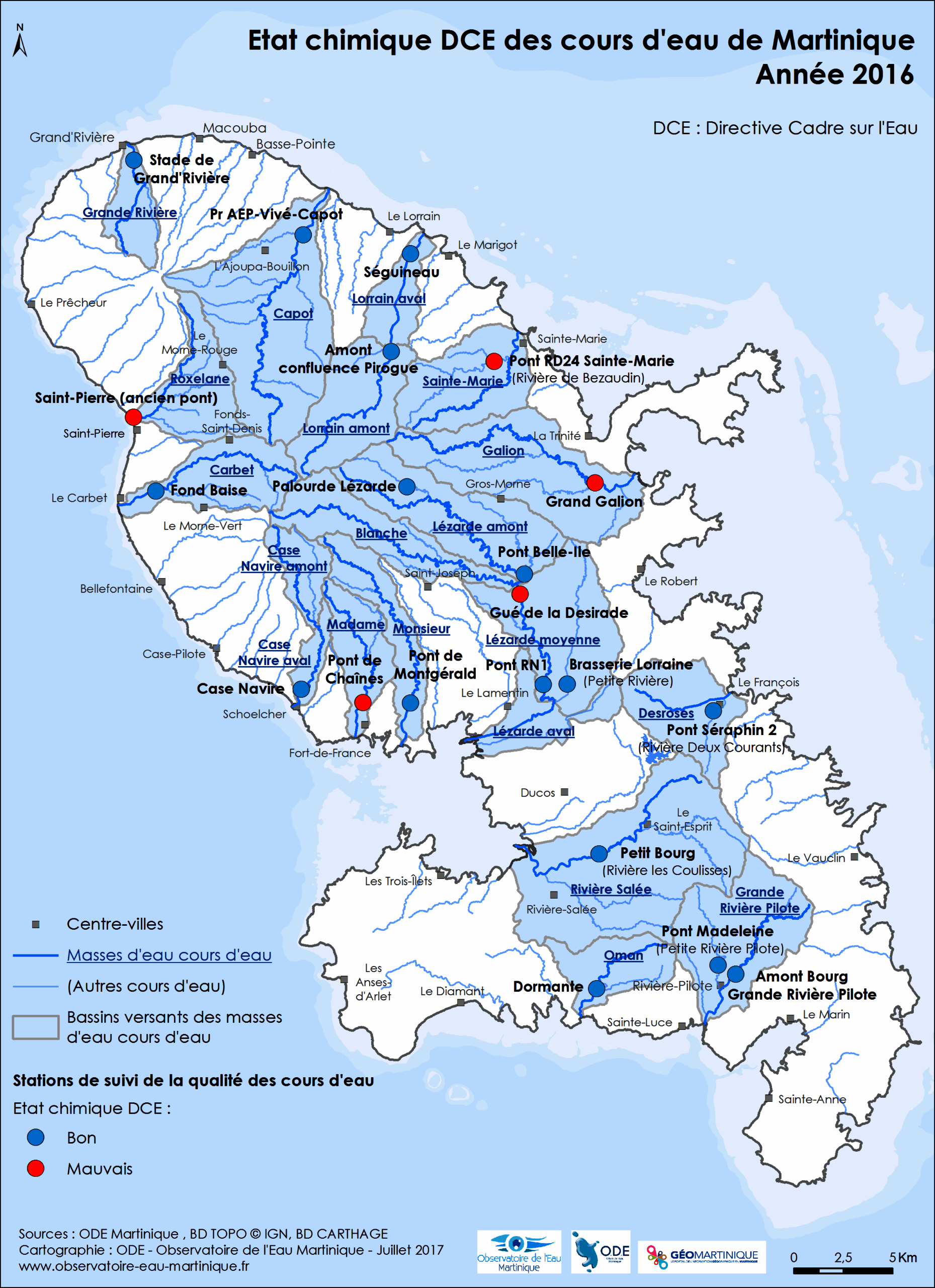 État chimique DCE des cours d'eau de Martinique en 2016