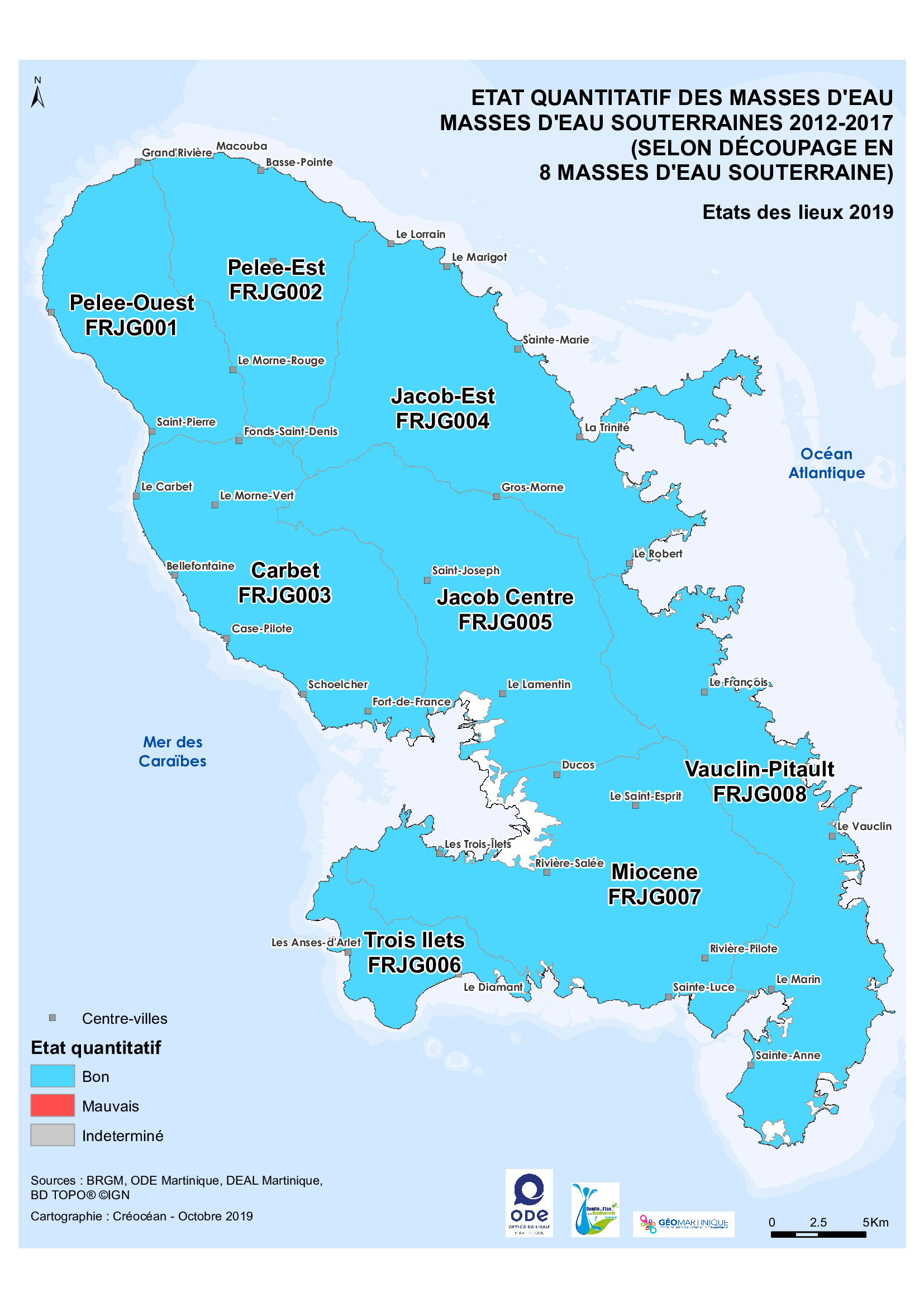 État des lieux 2019 – État quantitatif des masses d'eau souterraines – Données 2012-2017 (selon découpage en 8 masses d'eau souterraines)
