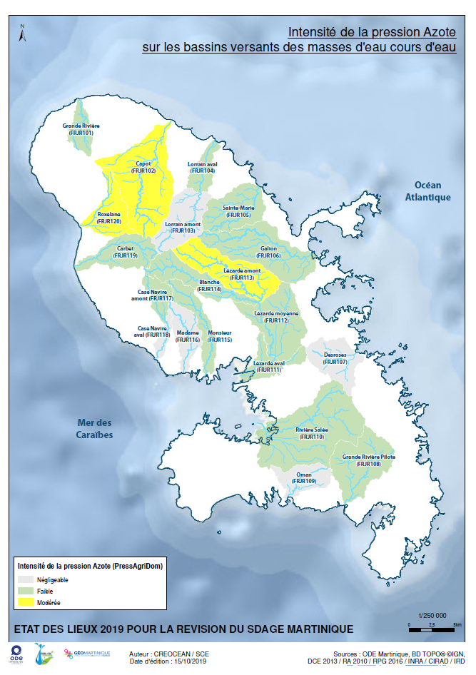 État des lieux 2019 – Intensité de la pression azote sur les bassins versants des masses d'eau cours d'eau